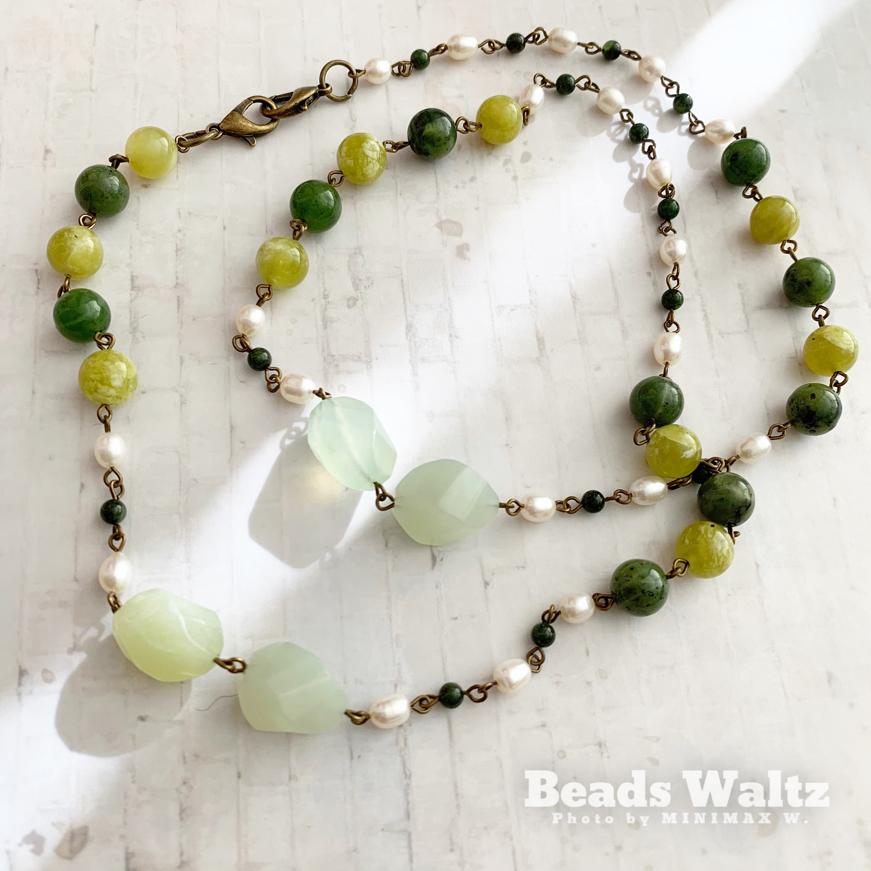 ★ BC Jade, Olive Jade, Freshwater Pearl & Prehnite