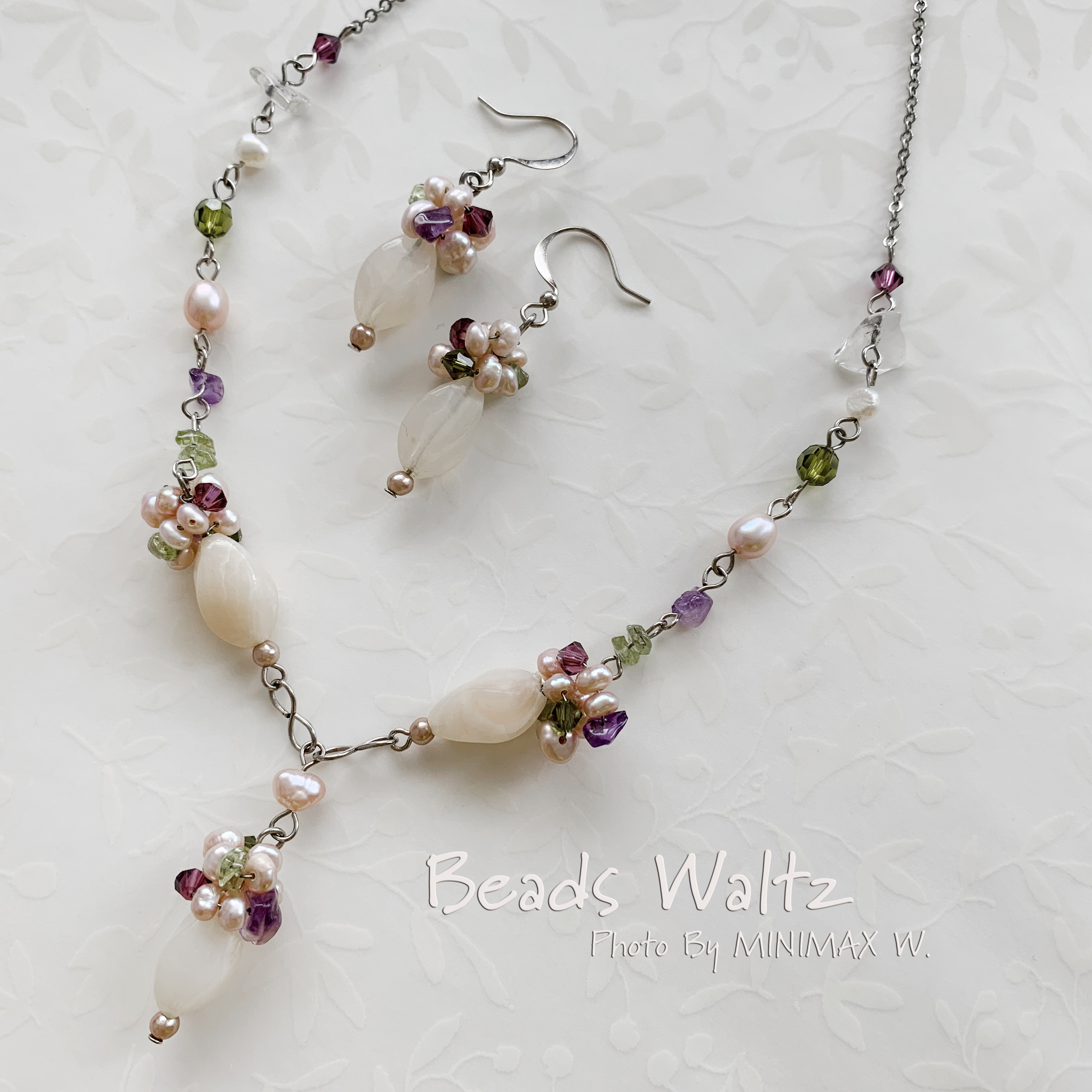 ★ Swarovski 4mm x 8, Swarovski 5mm x 2, Freshwater Pearl, Clear Quartz, Amethyst, Prasiolite & Glass round beads