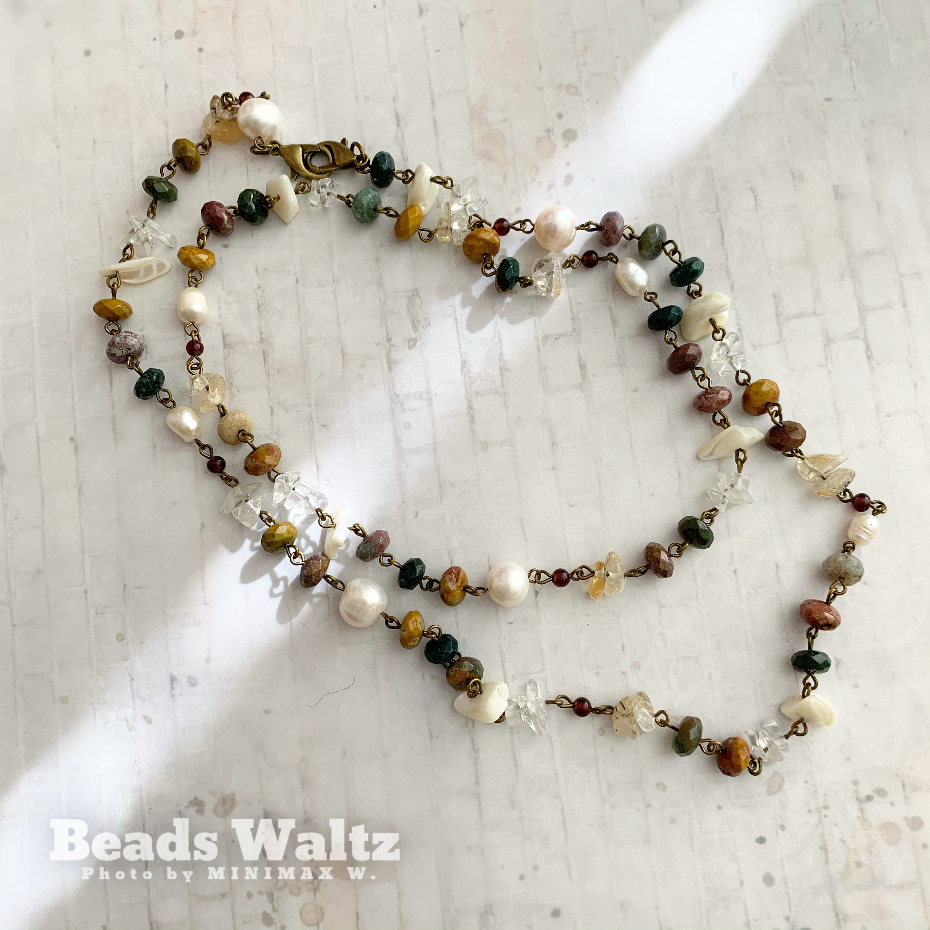 ★ Jasper, Freshwater Pearl, Garnet, Clear Quartz, Citrine, Golden Rutilated Quartz & Shell
