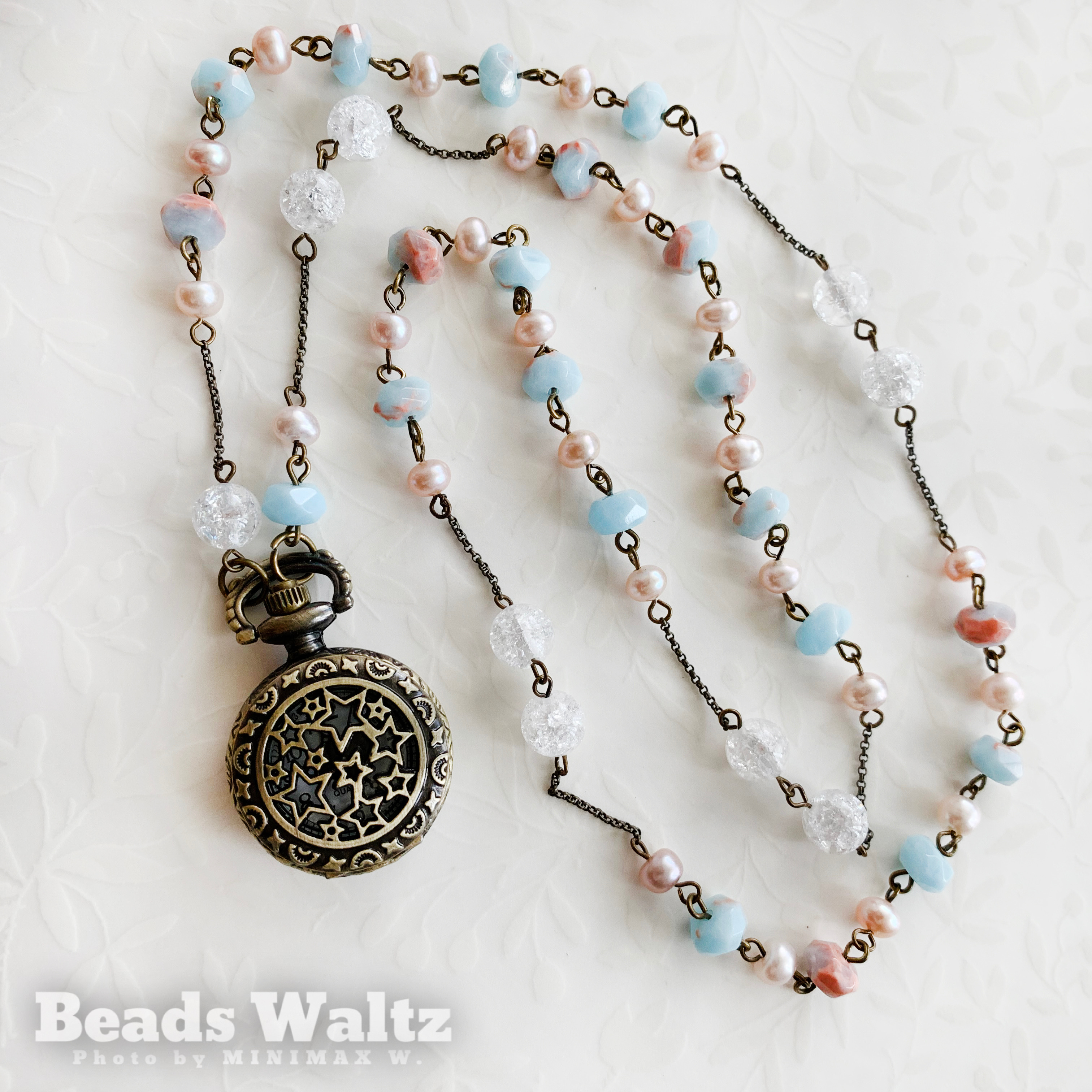 ★ Freshwater Pearl, Powder Blue Jasper & Cracked Clear Quartz