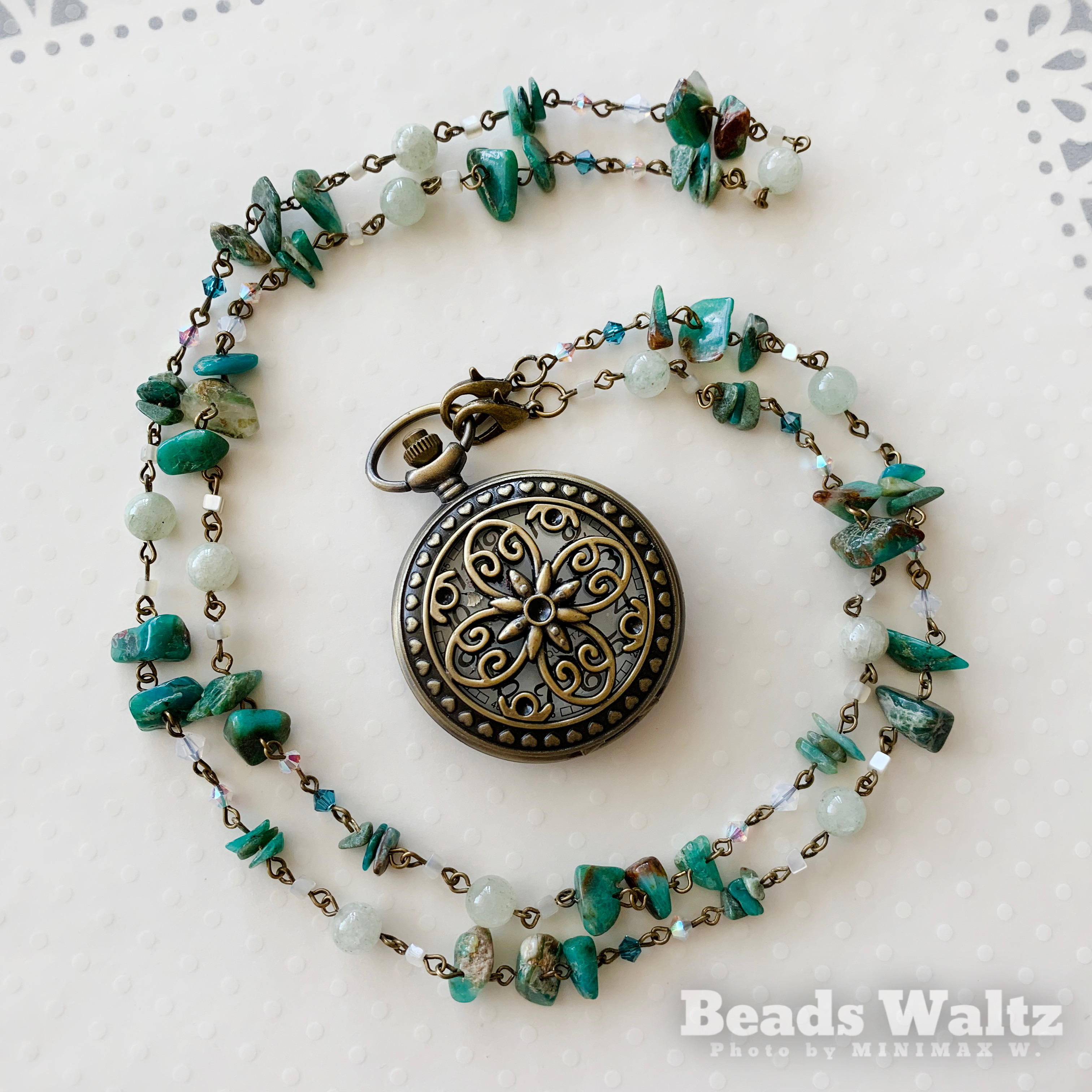 ★ Turquoise, New Mountain Jade, Swarovski 4mm x 17, Swarovski 6mm x 5 & Shell