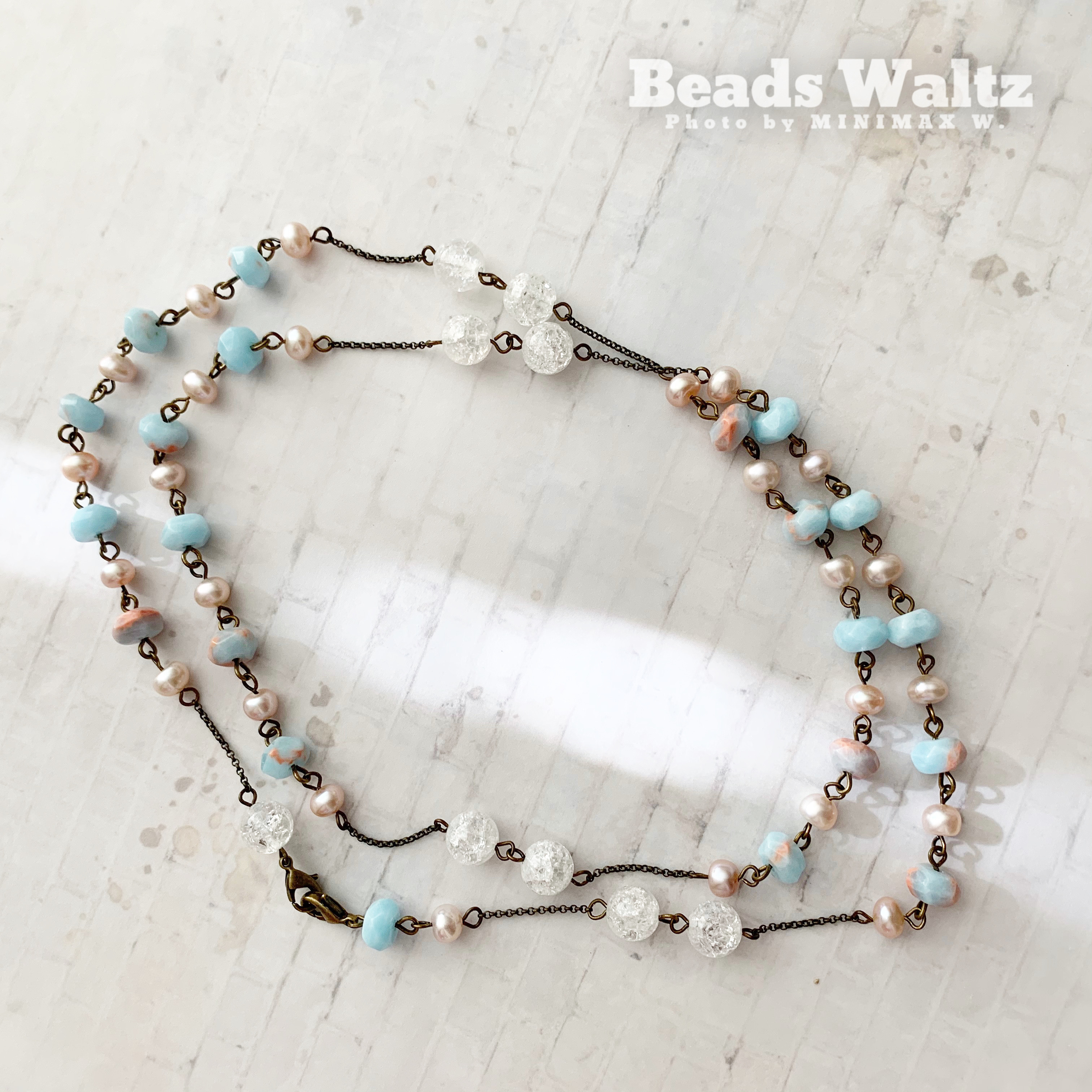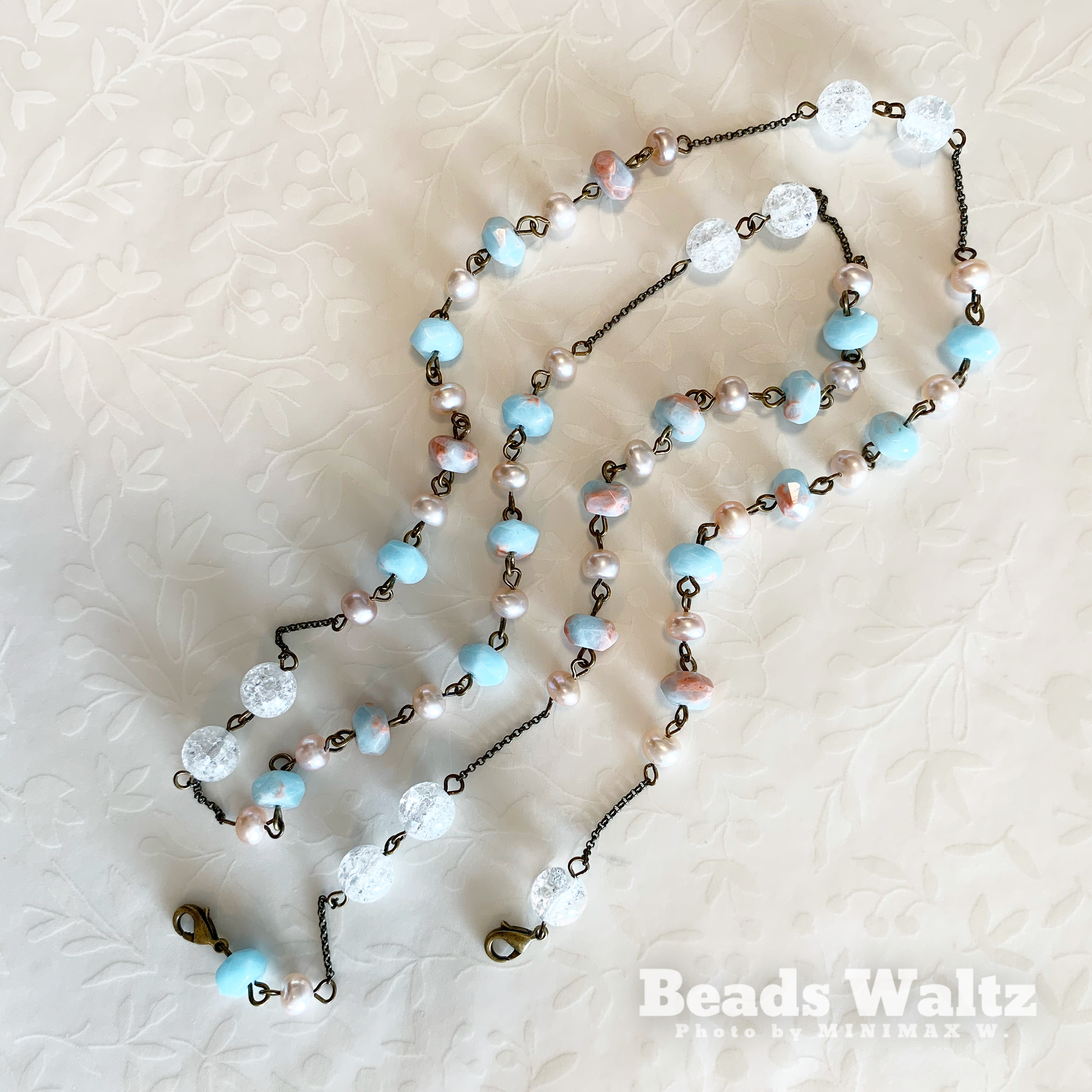 ★ Freshwater Pearl, Powder Blue Jasper & Cracked Clear Quartz