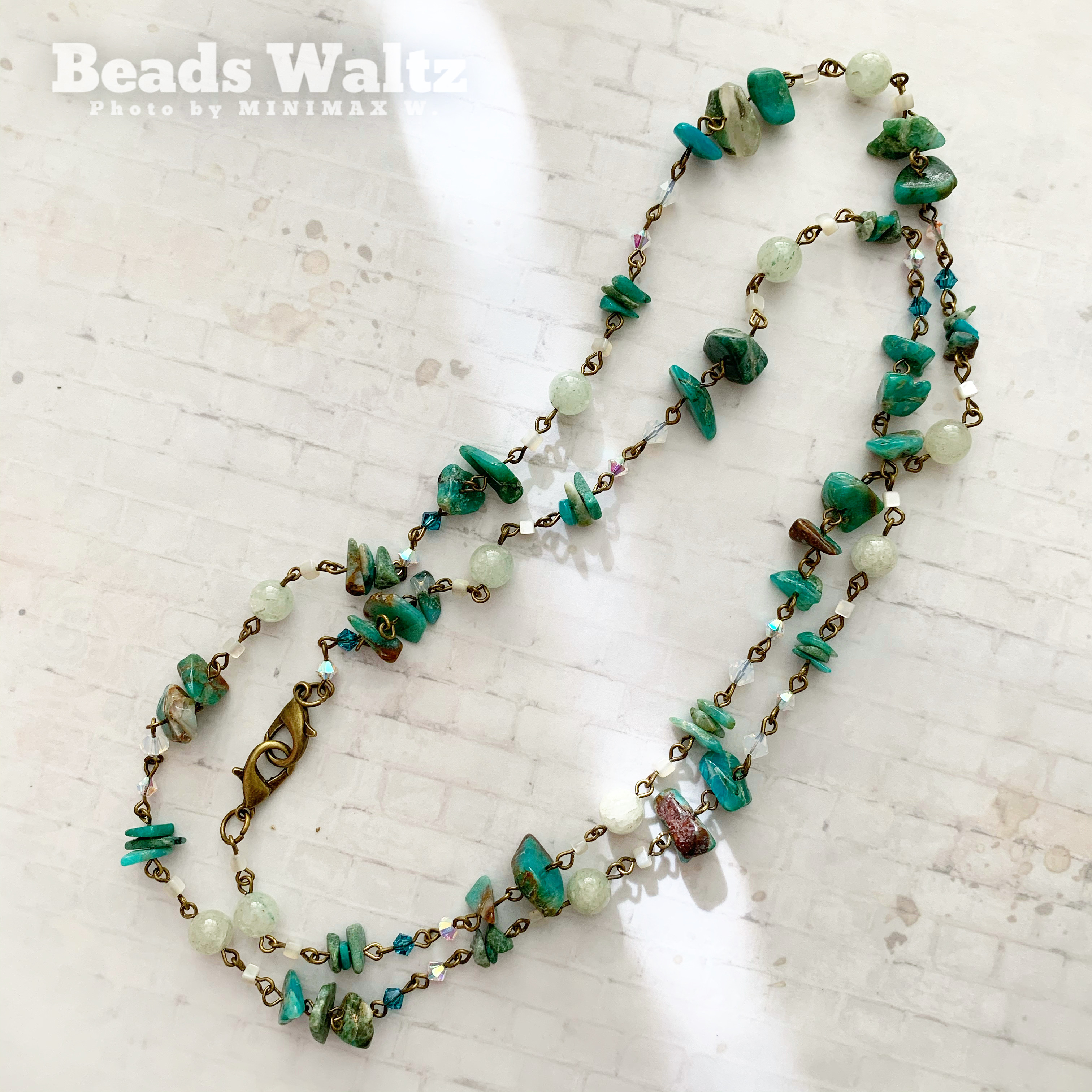 ★ Turquoise, New Mountain Jade, Swarovski 4mm x 17, Swarovski 6mm x 5 & Shell ★ Chain size: 37 inches ★ If you need different chain sizes, please email us: This email address is being protected from spambots. You need JavaScript enabled to view it.