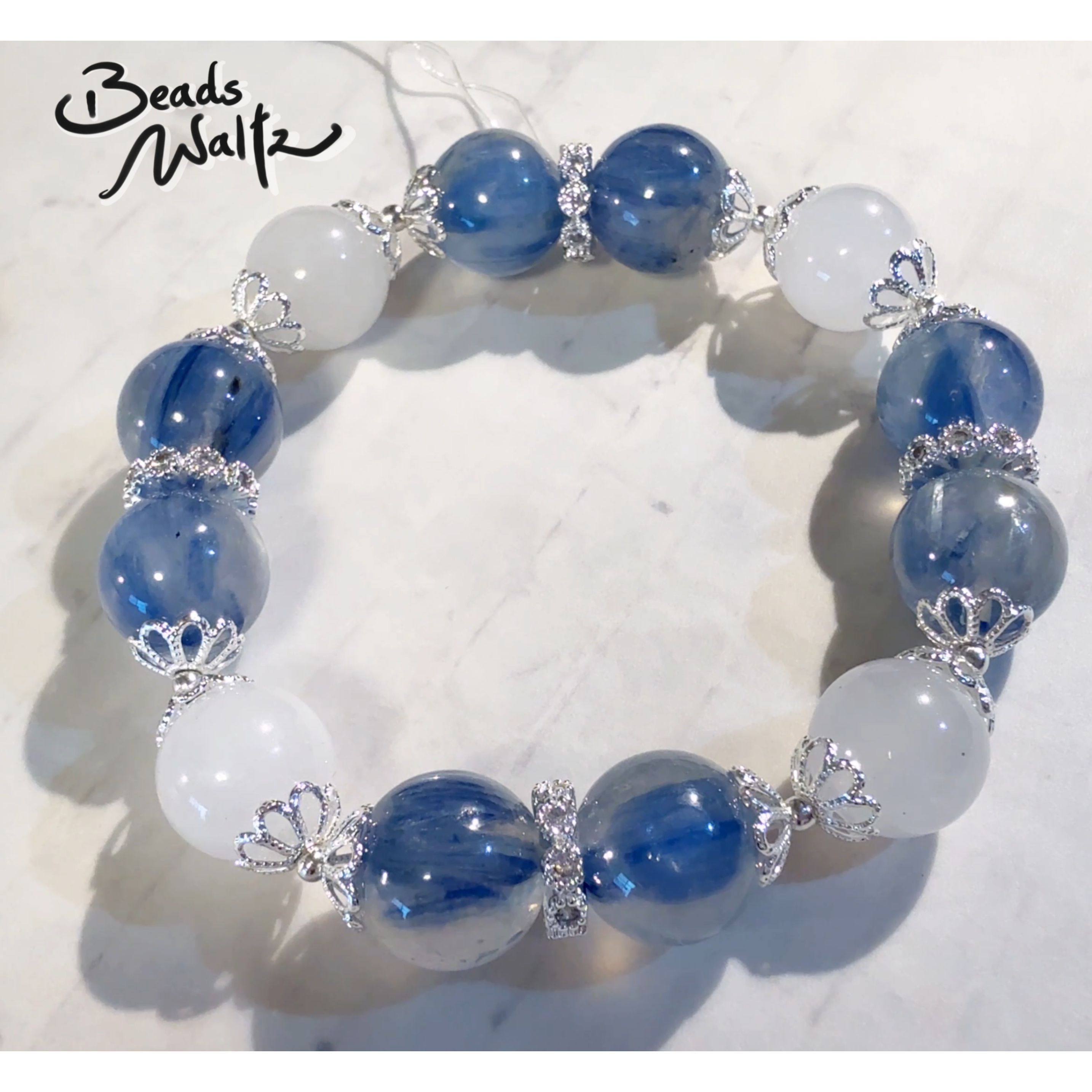 ★ Moonstone 10.5mm & Kyanite 12mm