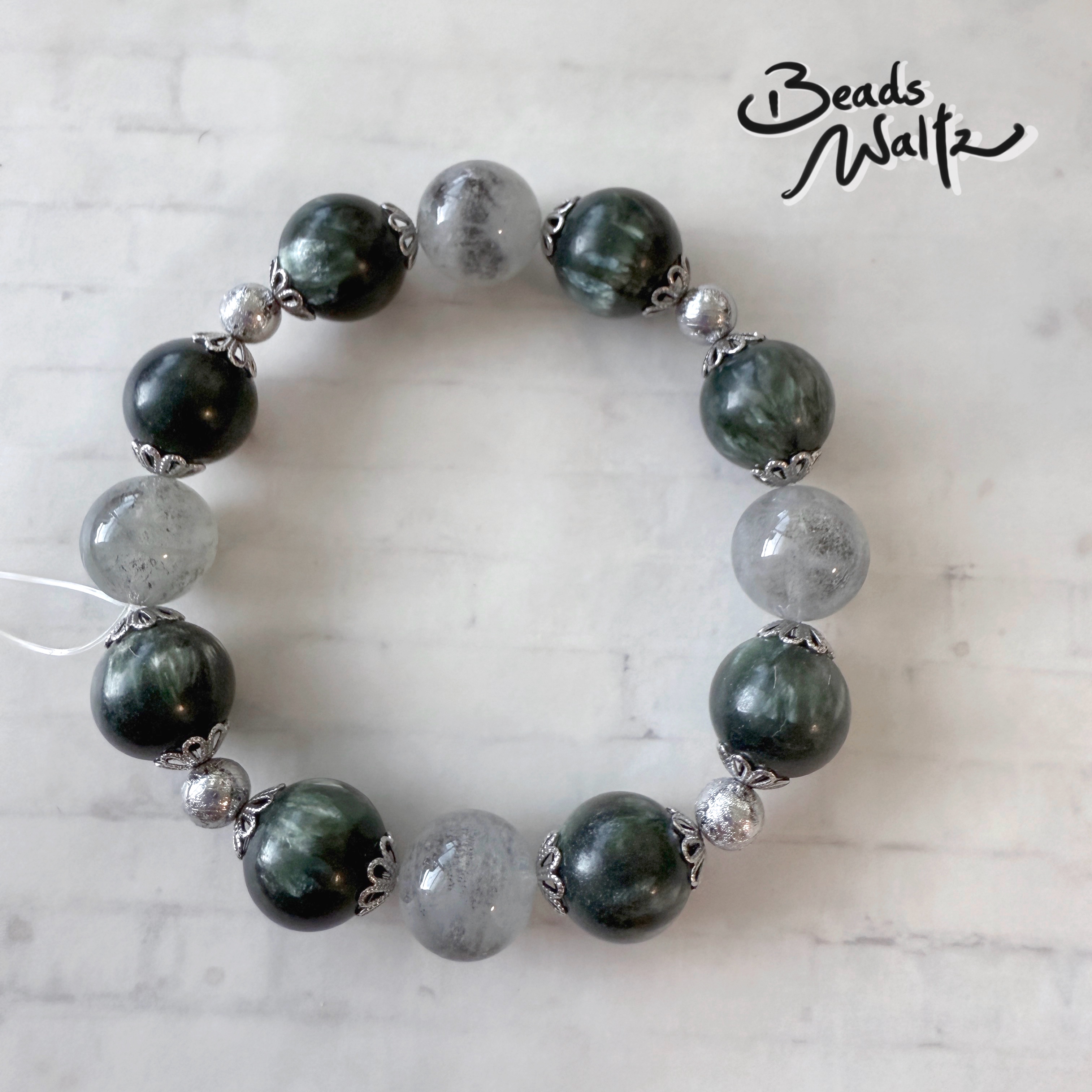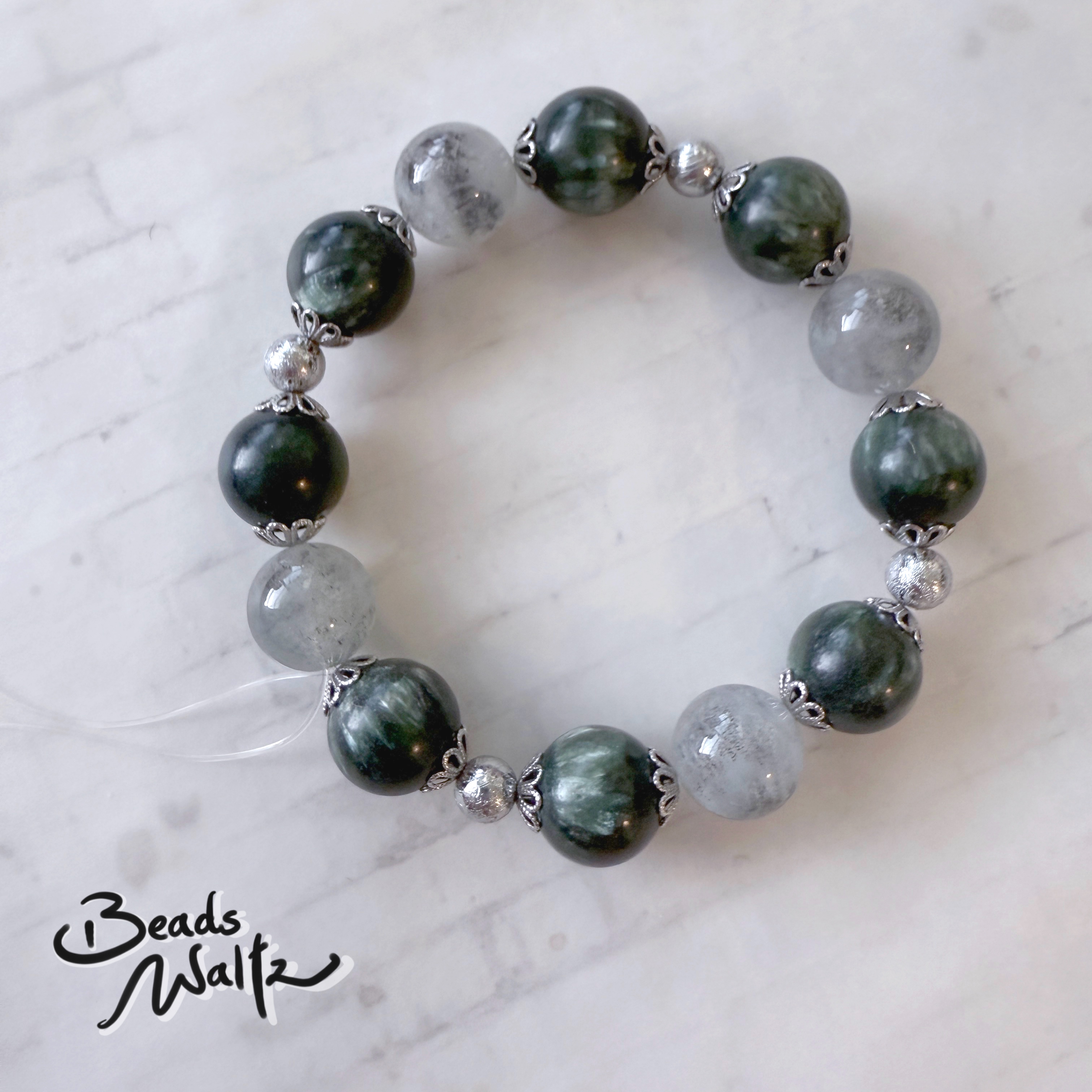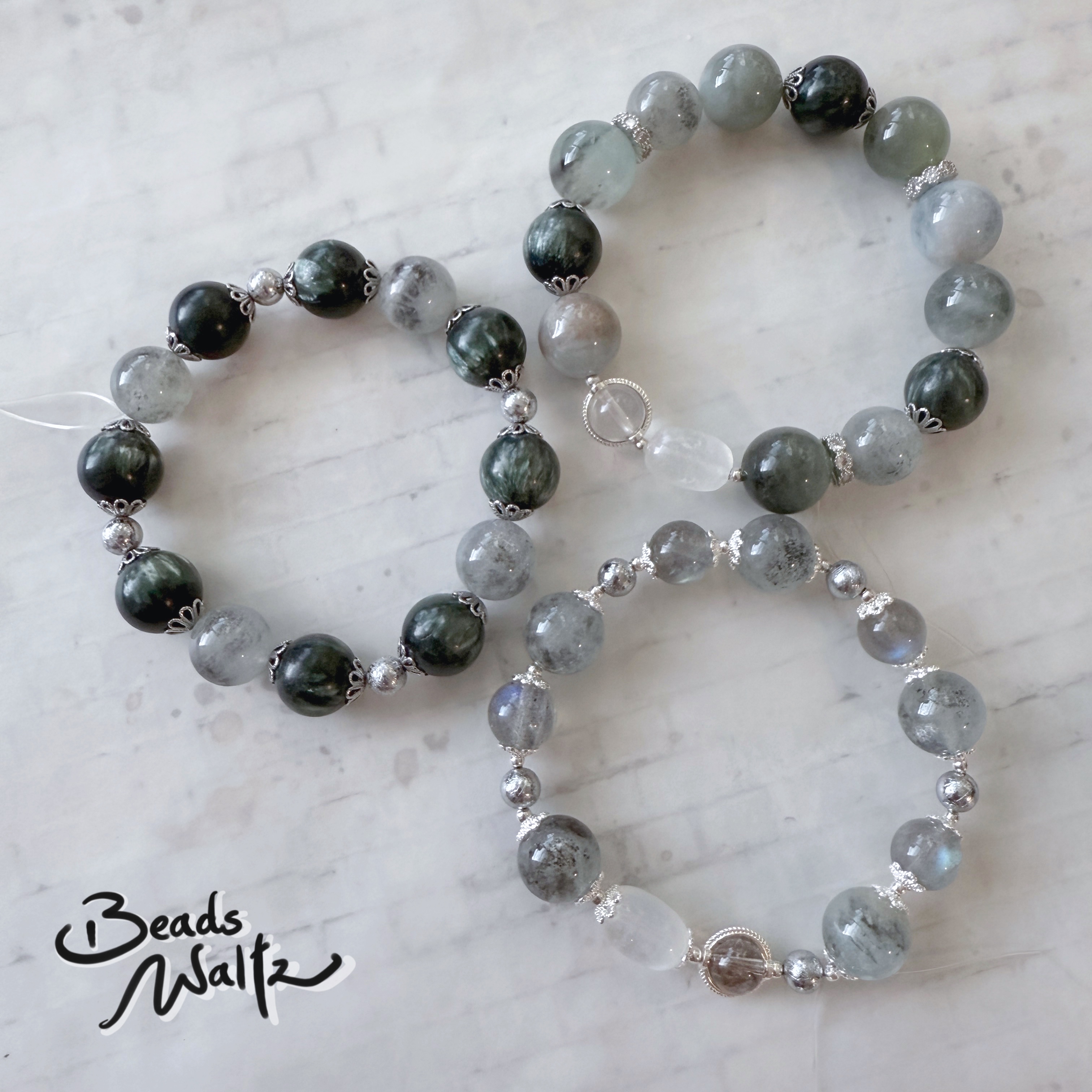 ★ Seraphinite 12mm, Aquamarine 12 mm & Gibeon 6mm