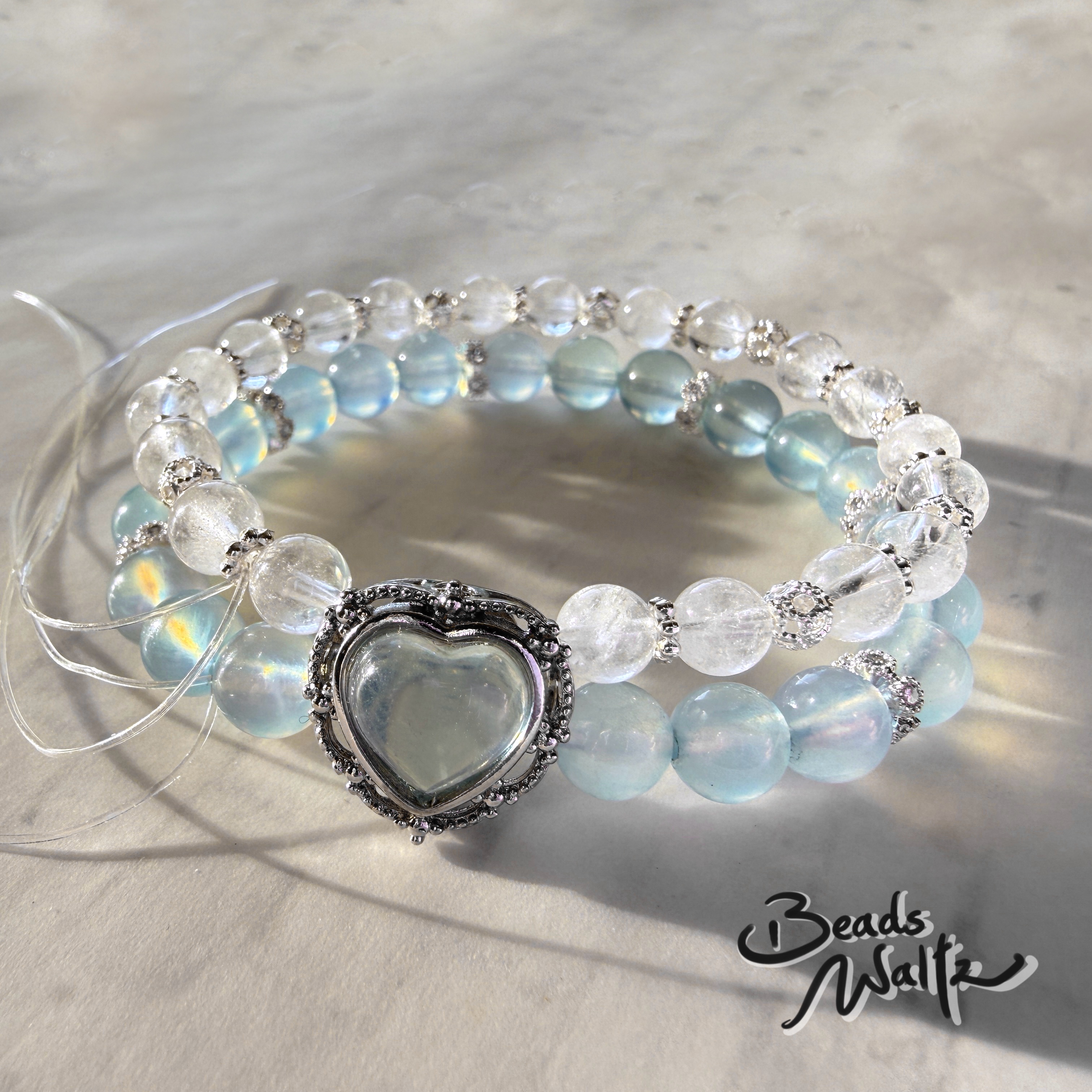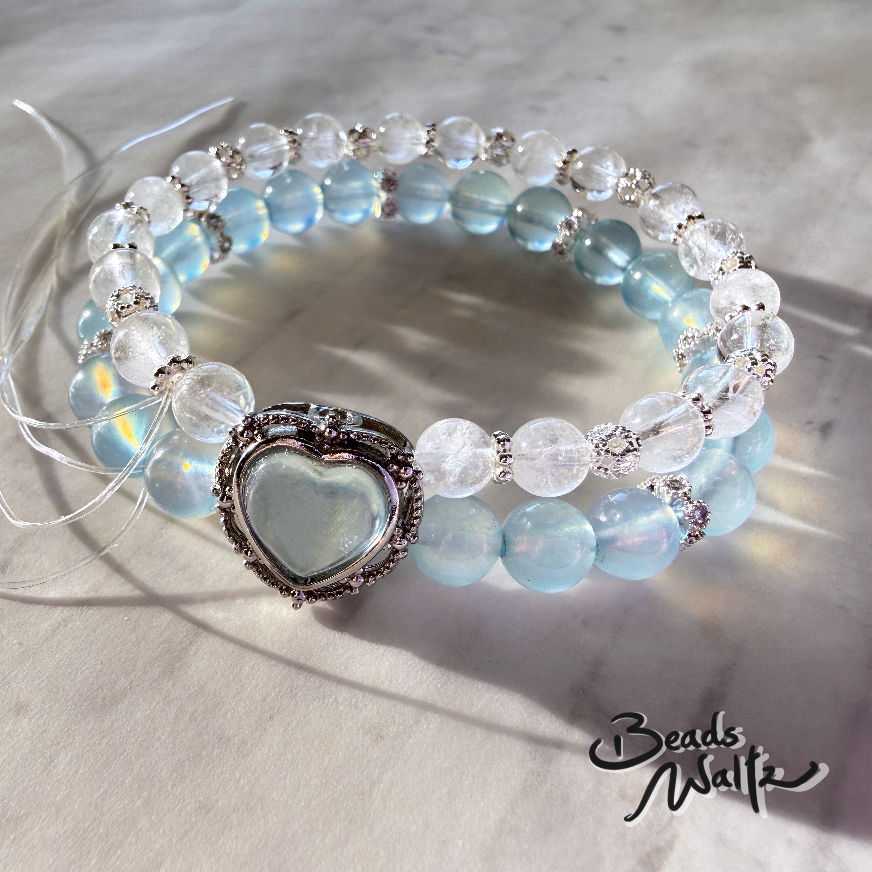 ★ Aquamarine 7.5mm, Aquamarine in Heart Shape & Clear Quartz 6mm