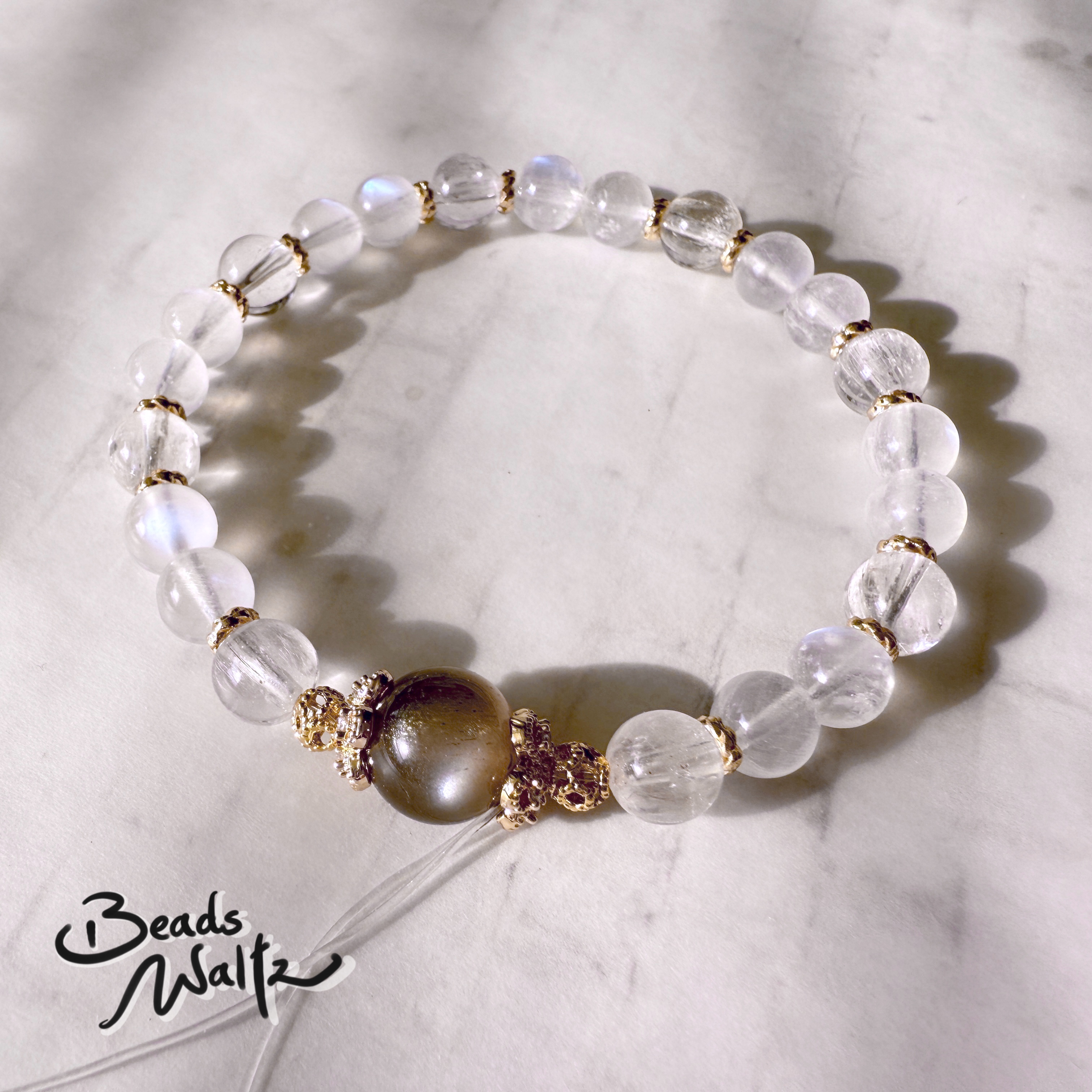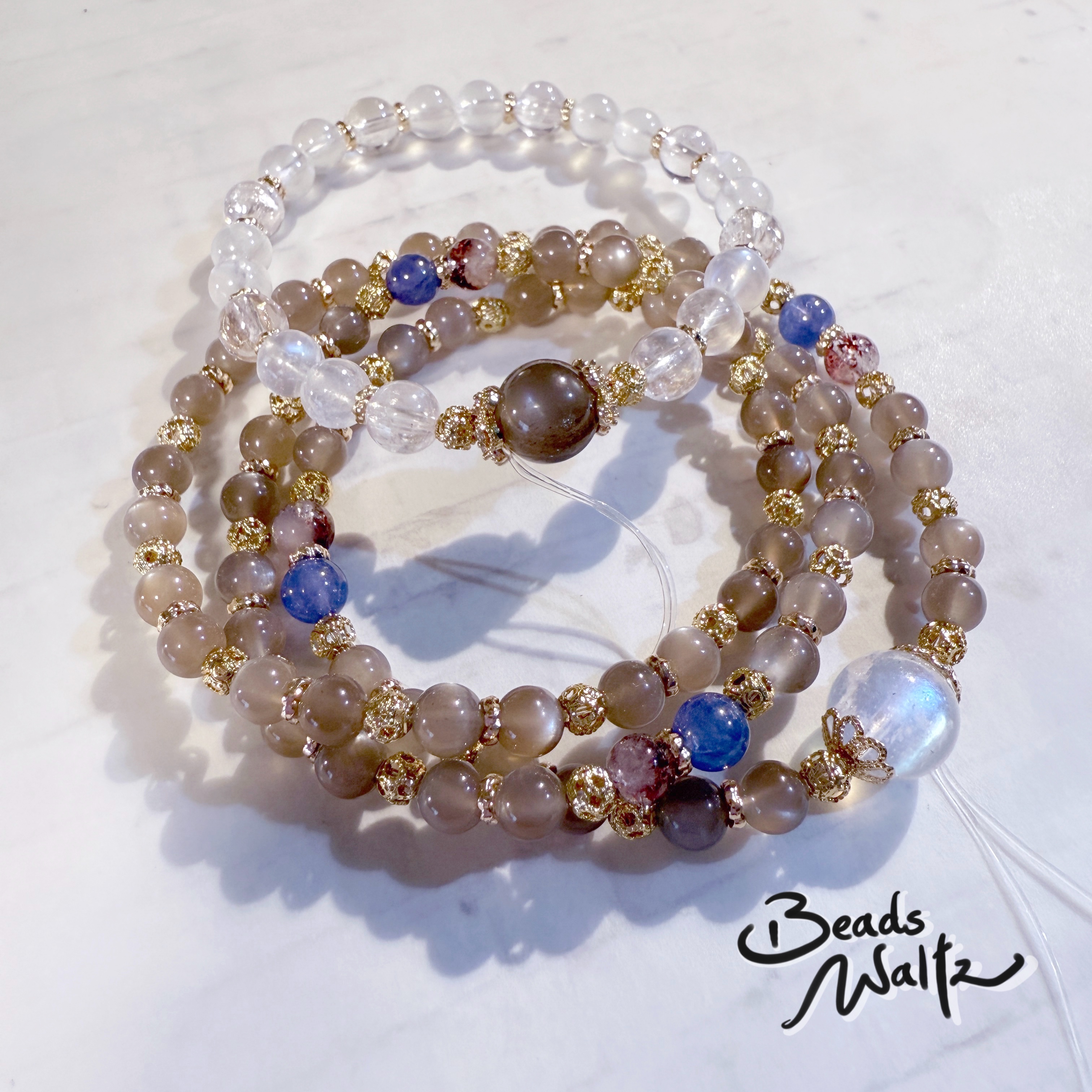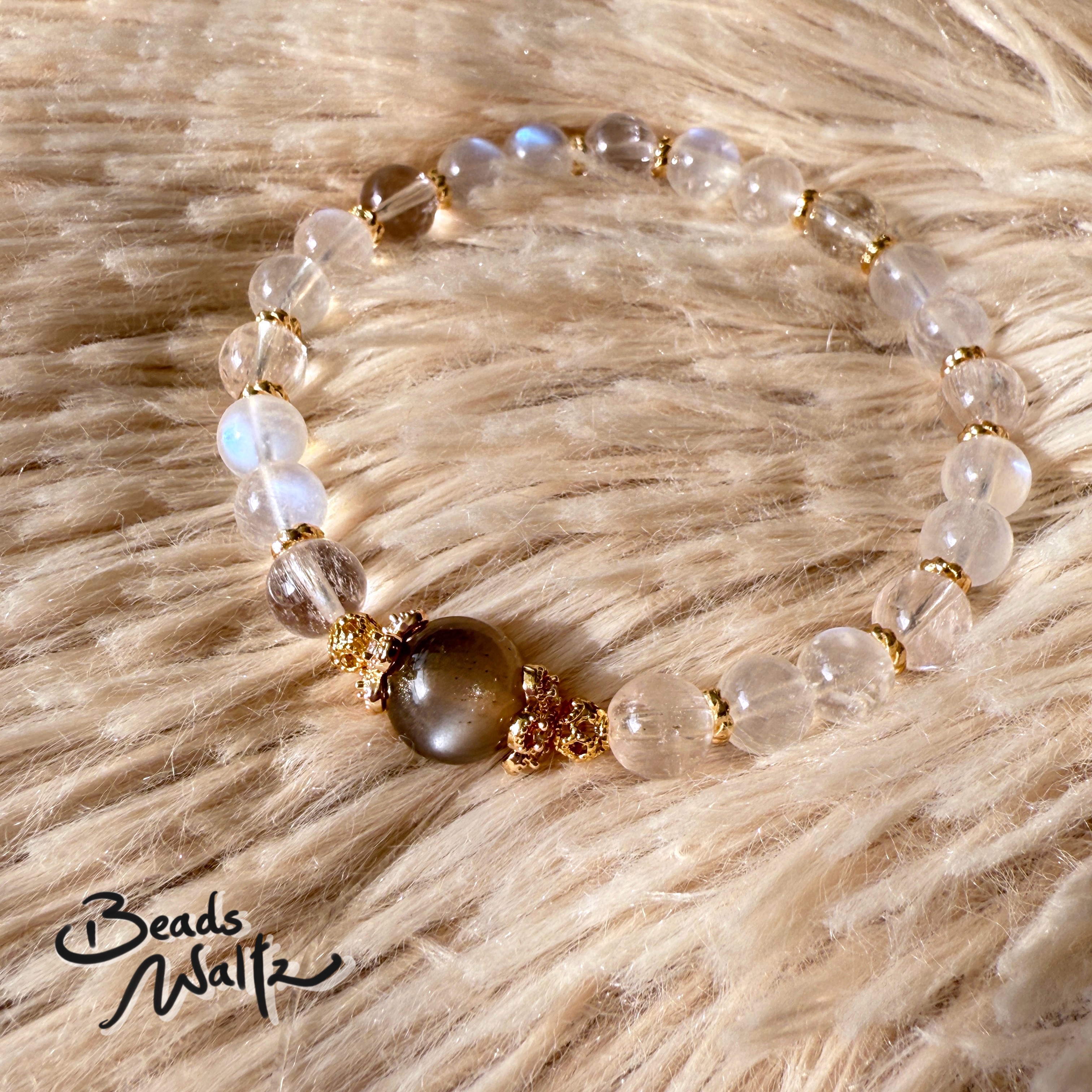 ★ Moonstone 6.5mm, Black Sunstone 9.5mm & Ice Kunzite 6.5mm
