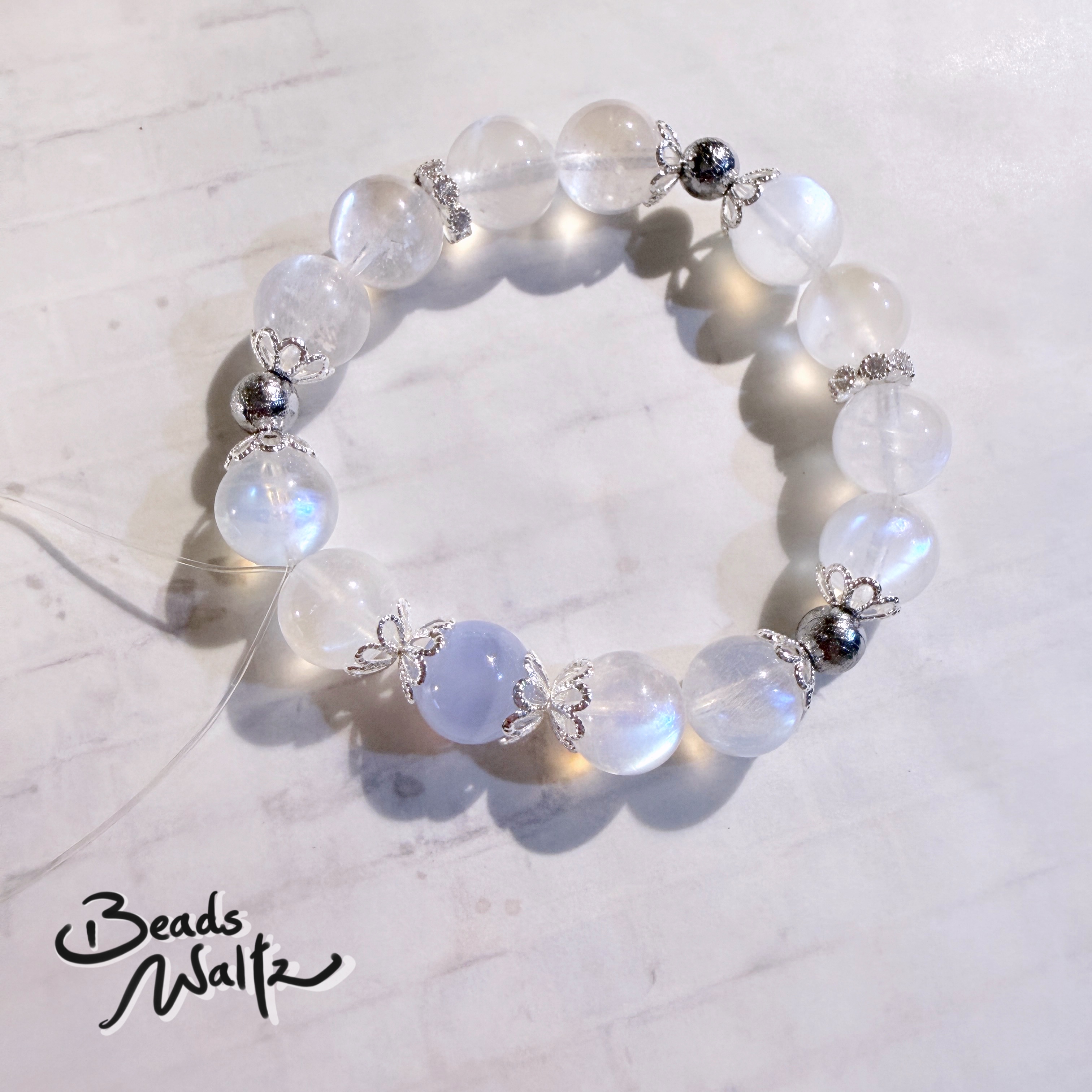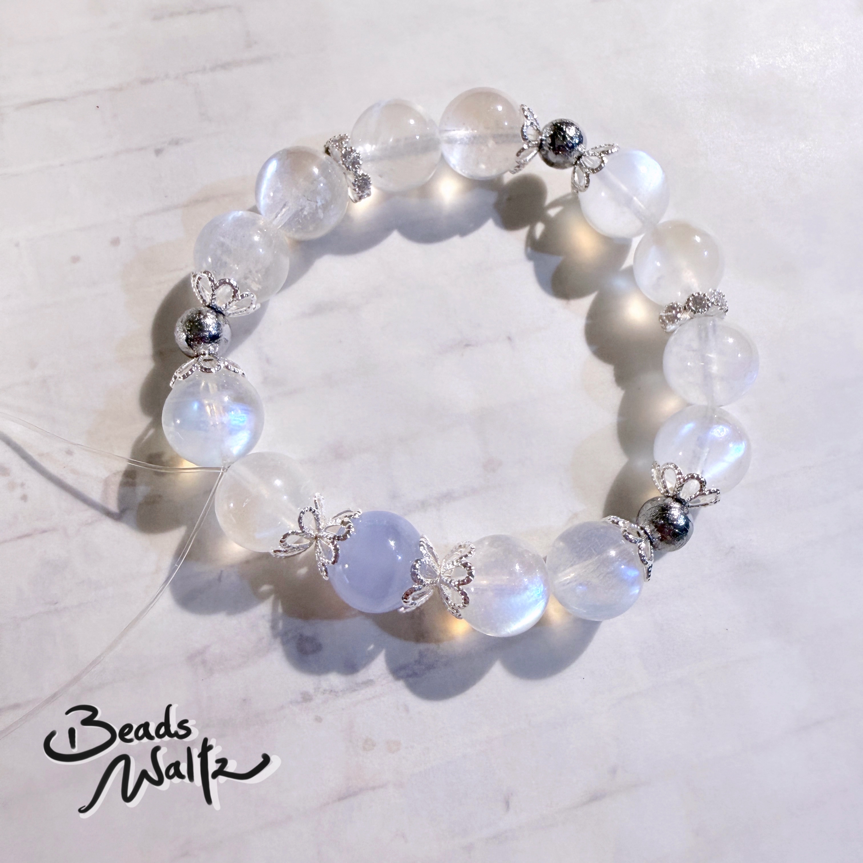 ★ Moonstone 10mm, Blue Lace Agate 10mm & Gibeon 6mm