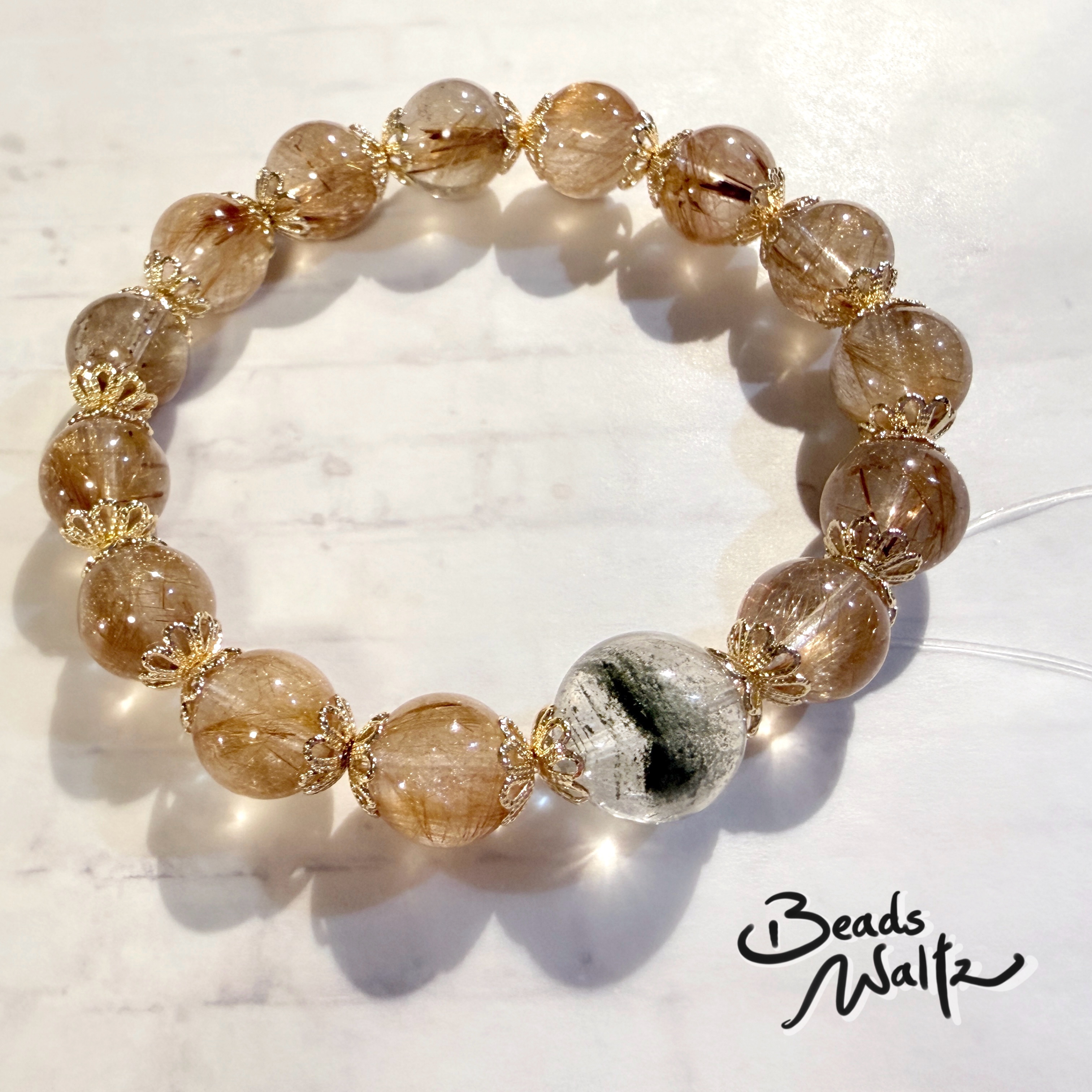 ★ Golden Rutile Quartz 10mm & Green Phantom 12mm