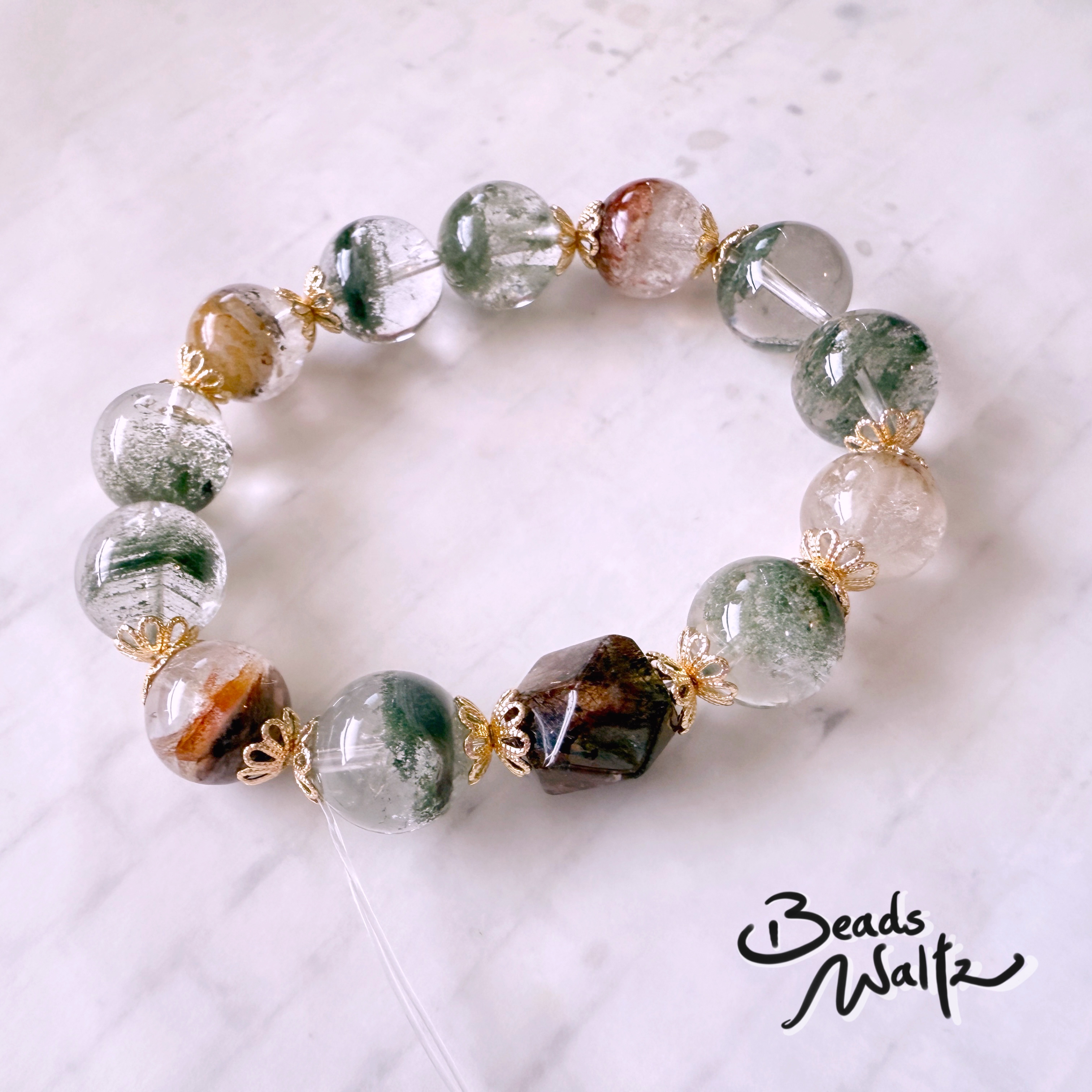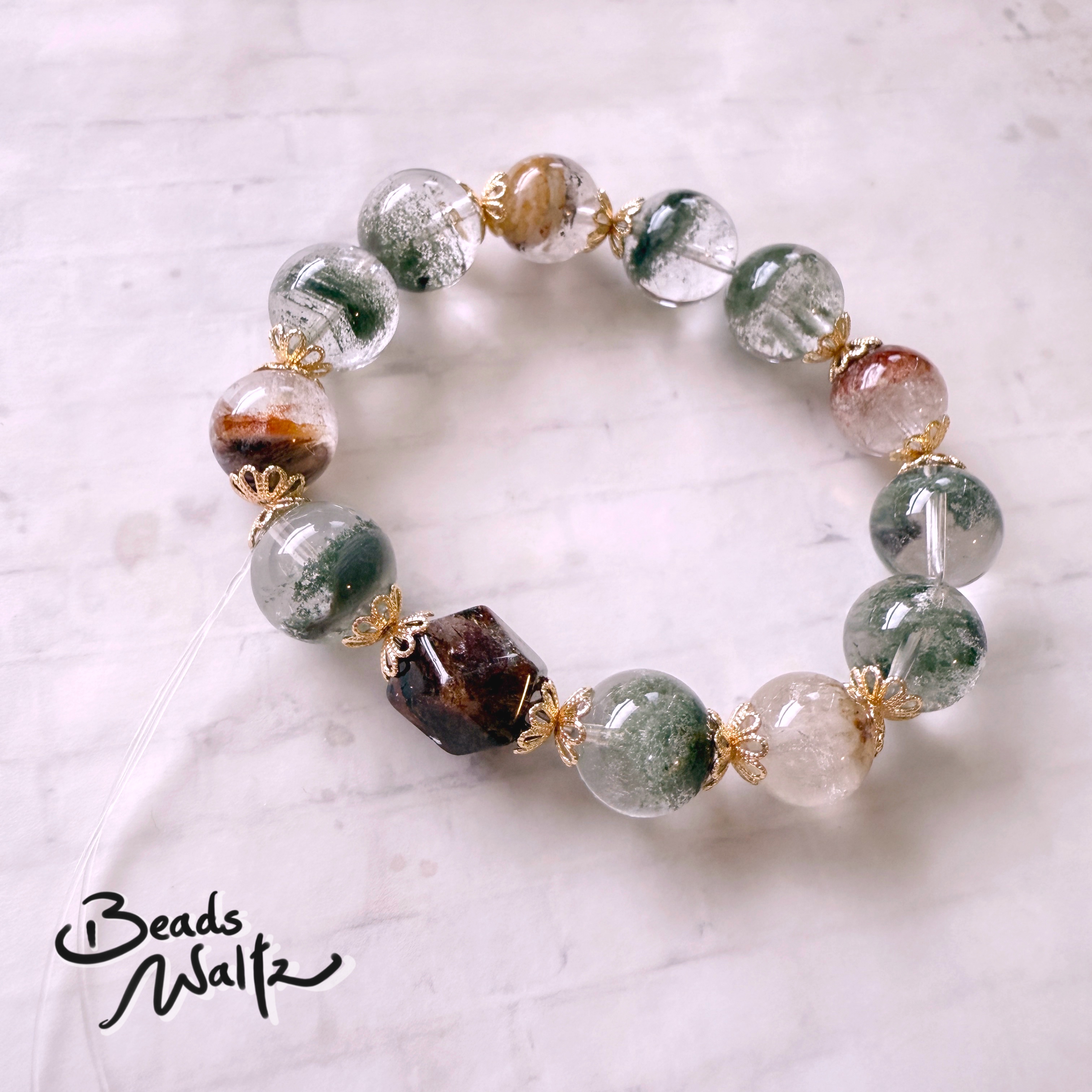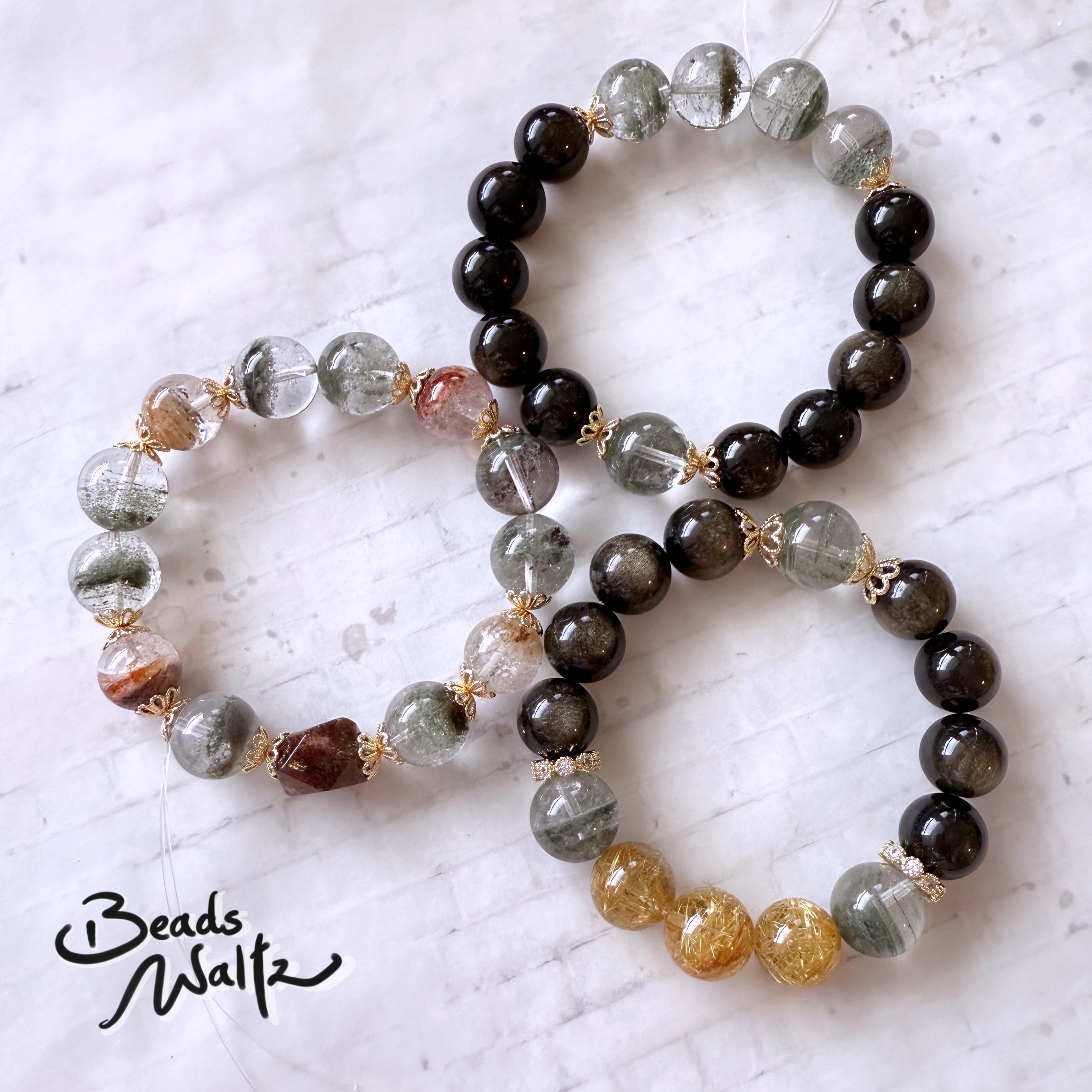 ★ Green Phantom Quartz 12-13mm, Red Super Seven Quartz 9x13mm & Hair Rutile Quartz with Phantom 12mm