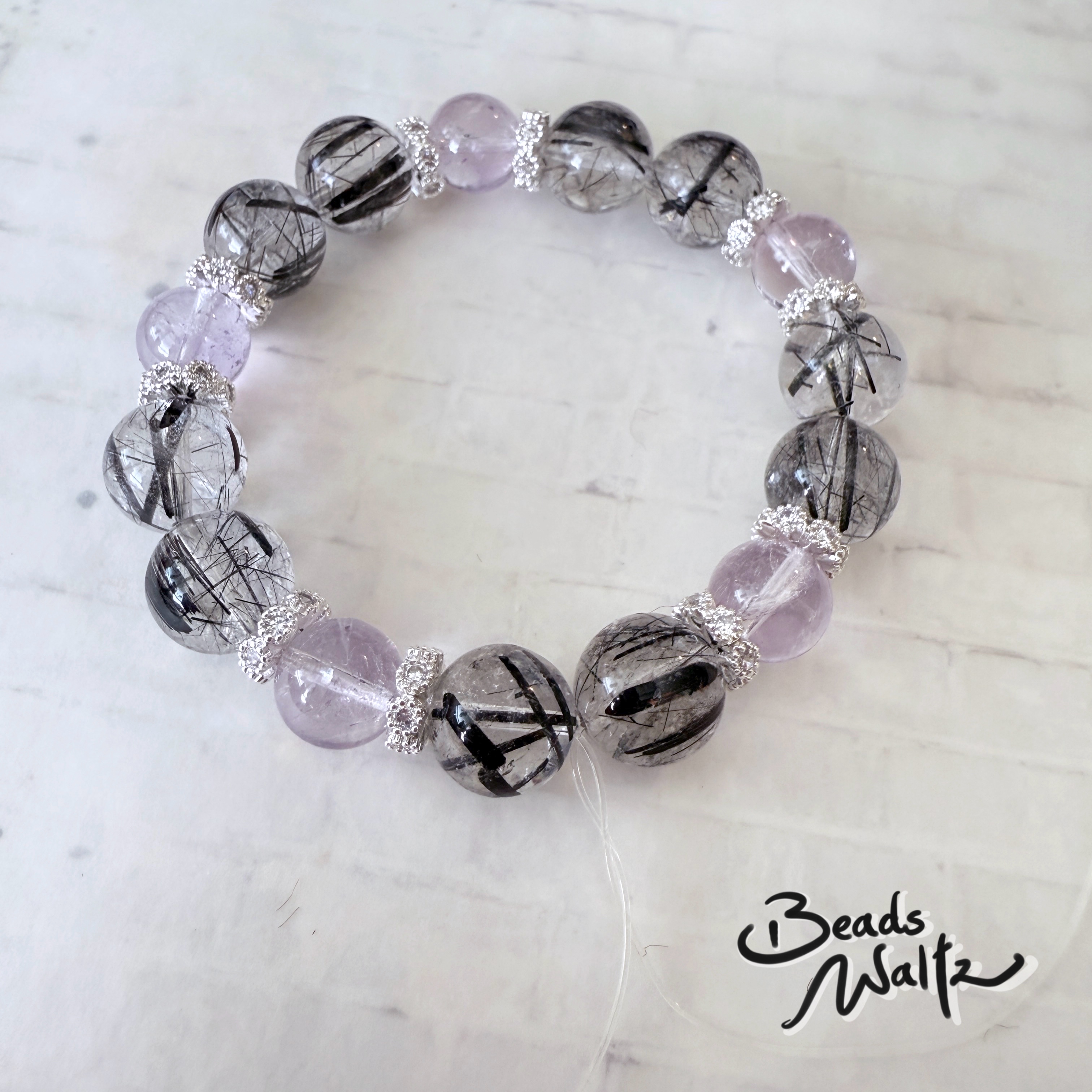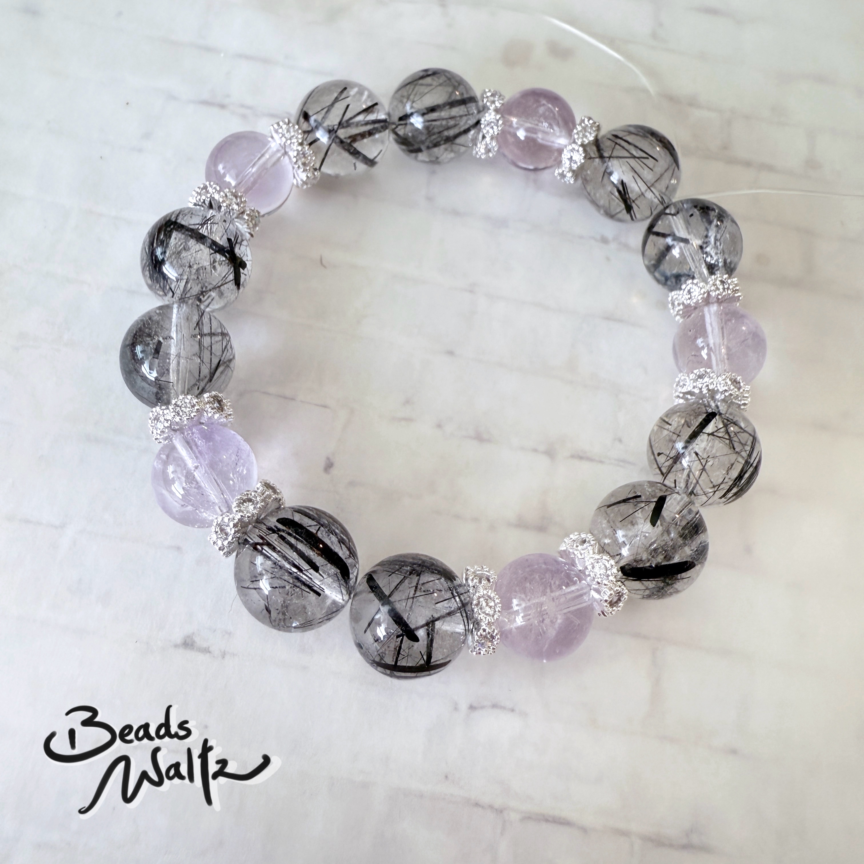 ★ Black Rutile Quartz Quartz 10.5mm & Bolivian Amethyst 10mm