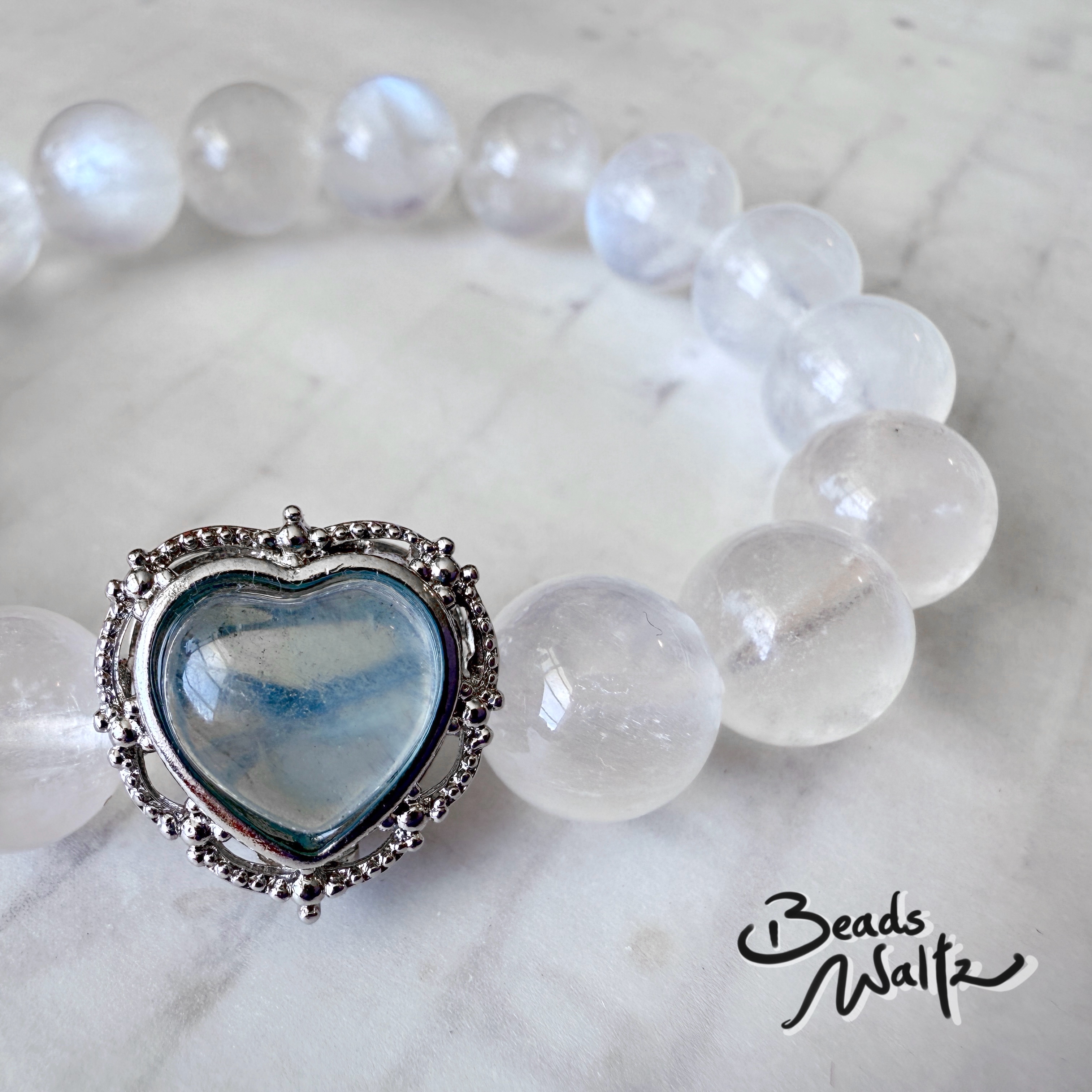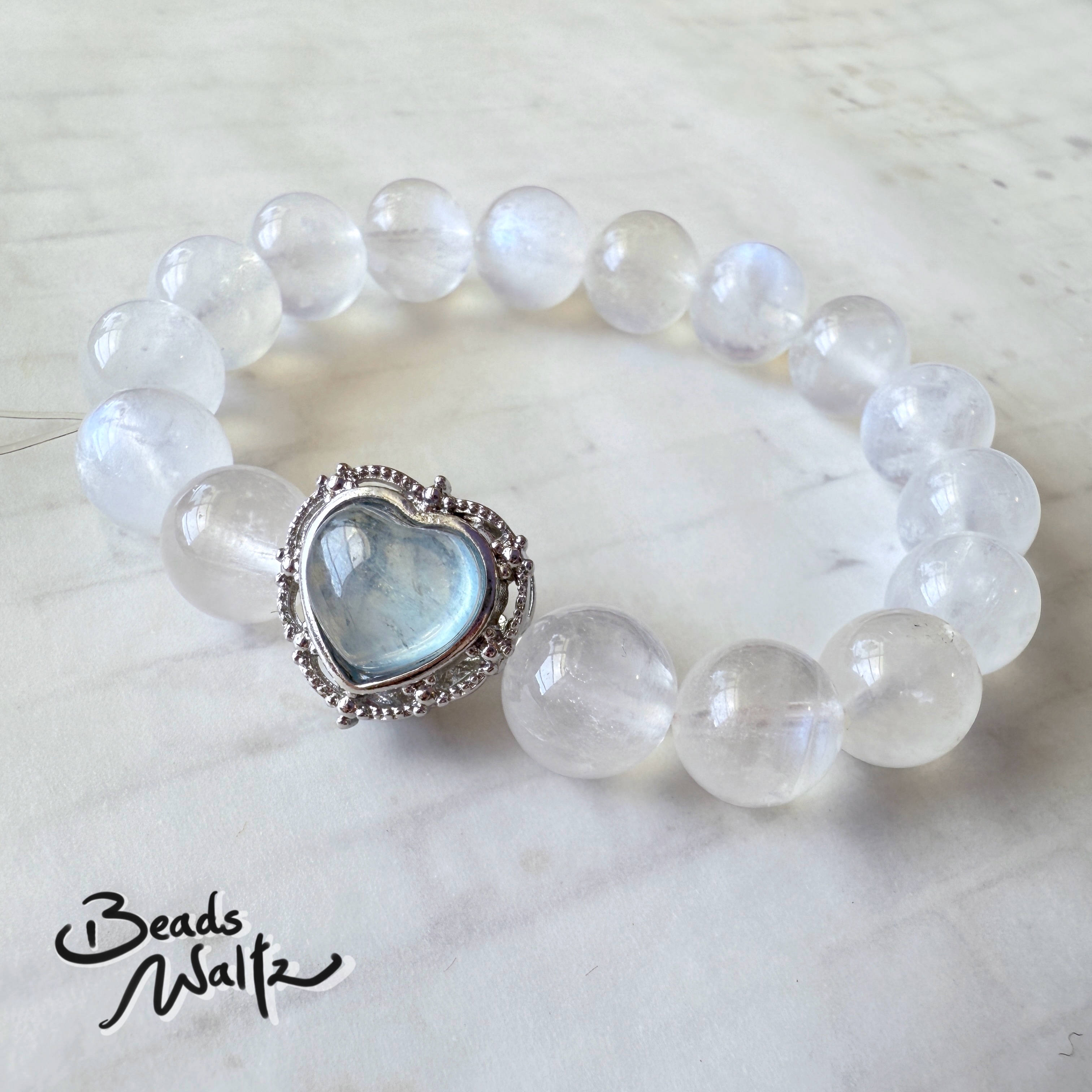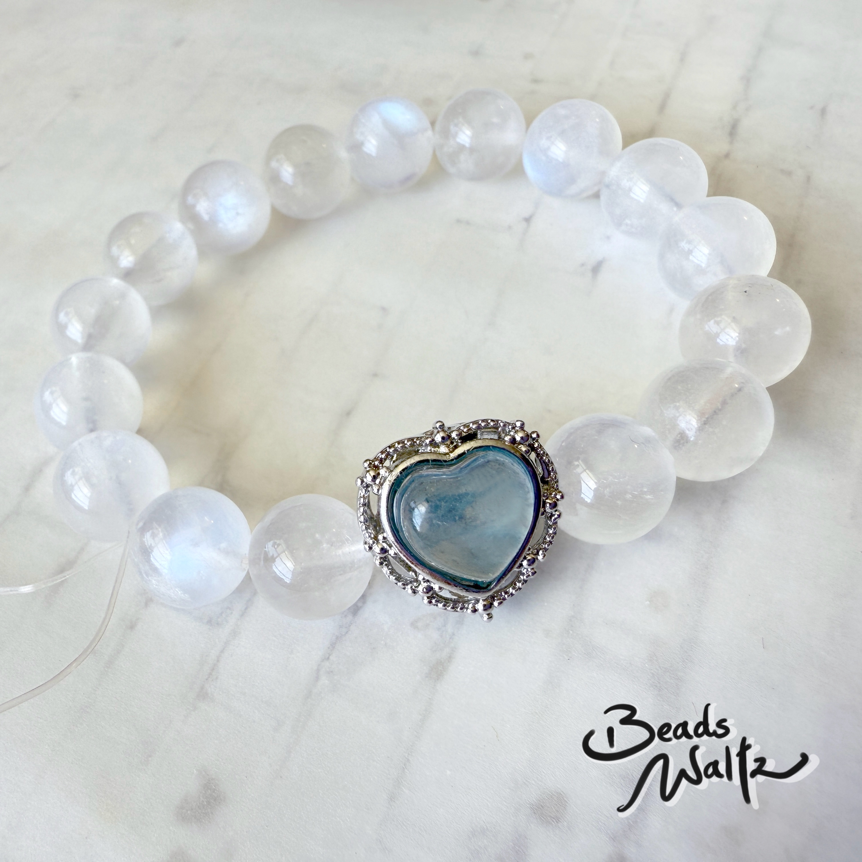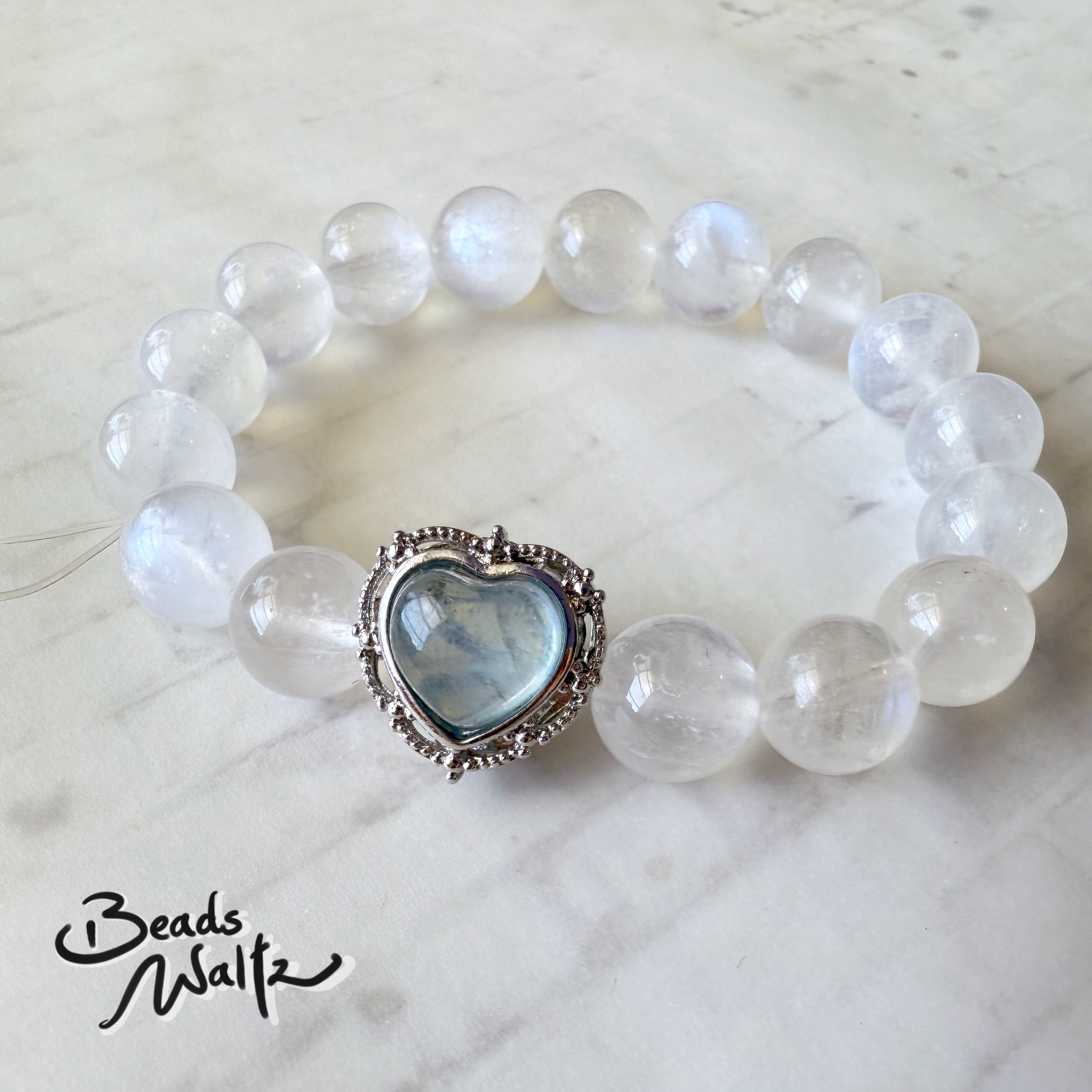 ★ Aquamarine in Heart Shape & Moonstone 10mm