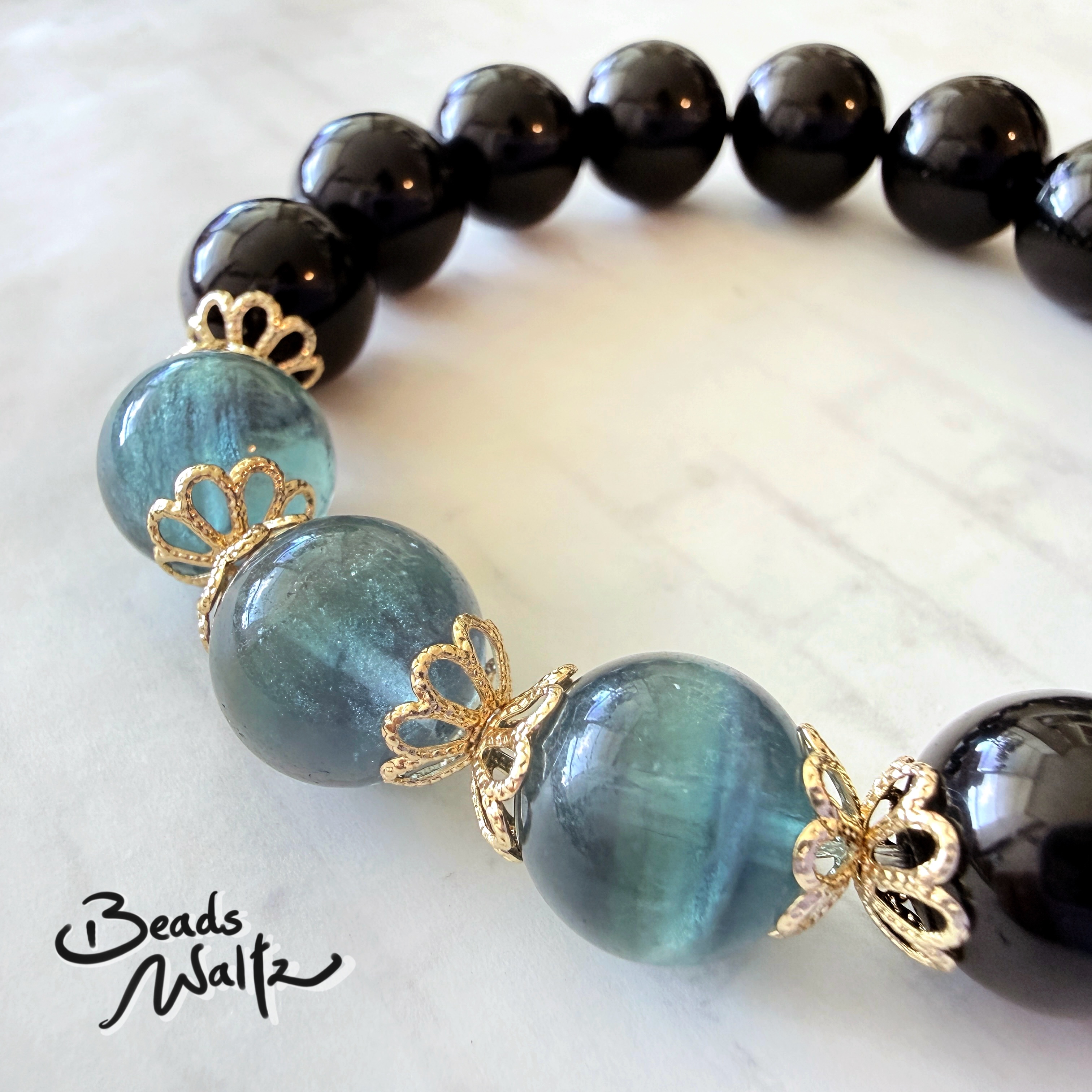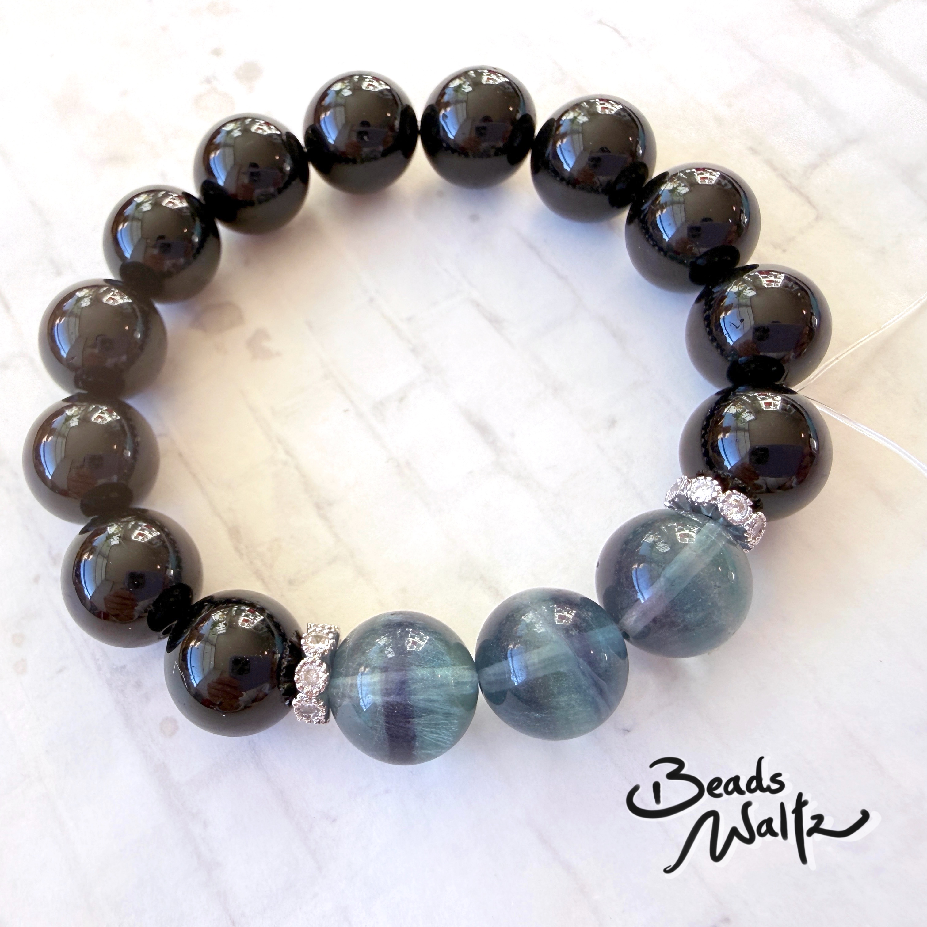 ★ Fluorite 12mm & Obsidian 12mm
