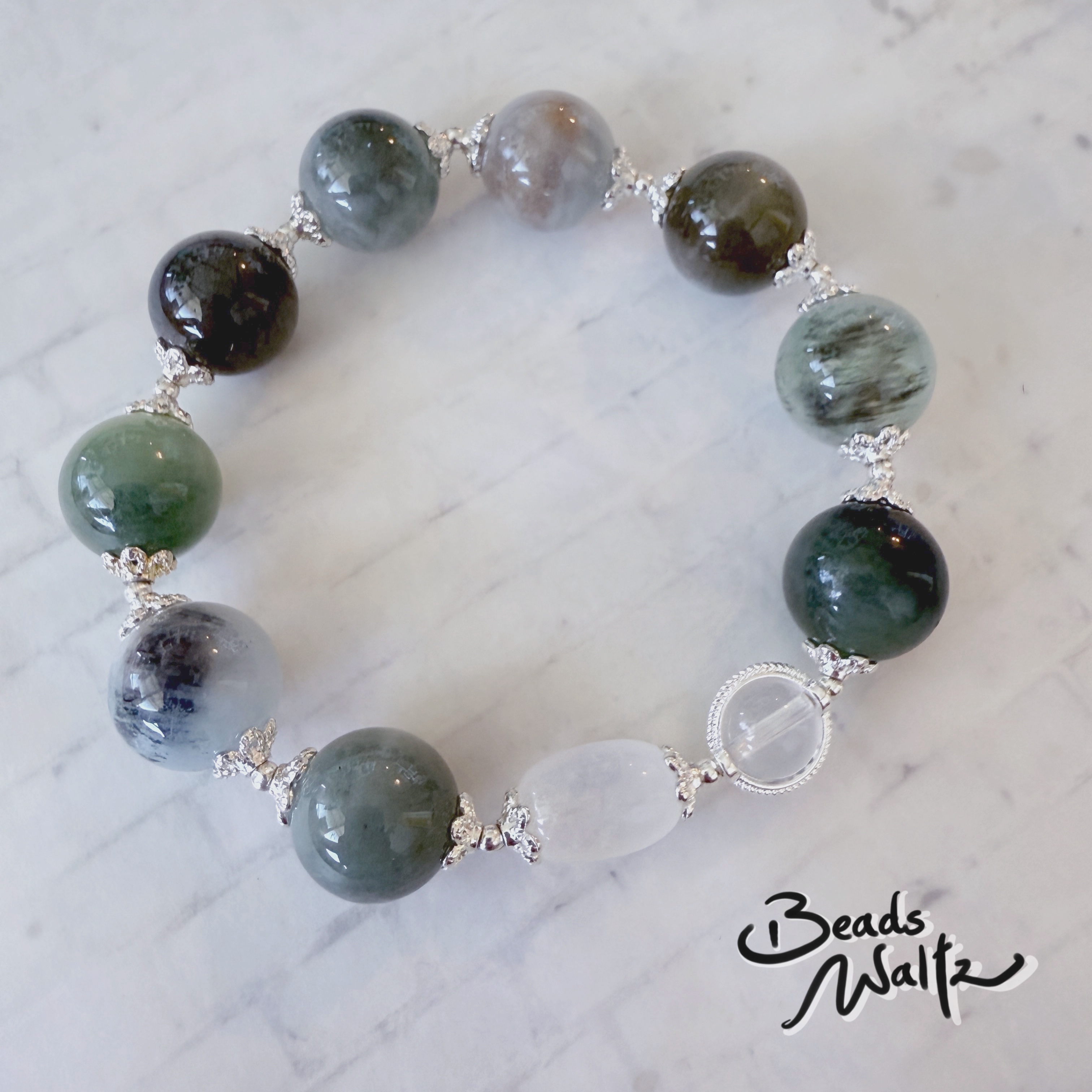 ★ Aquamarine 13.5mm, Moonstone 9x13mm & Rose Quartz 8mm
