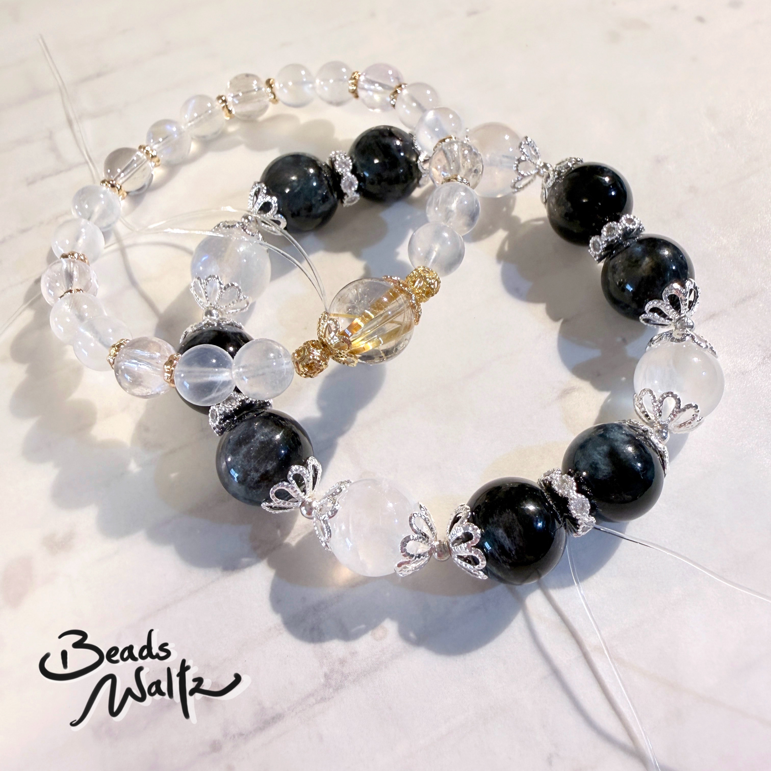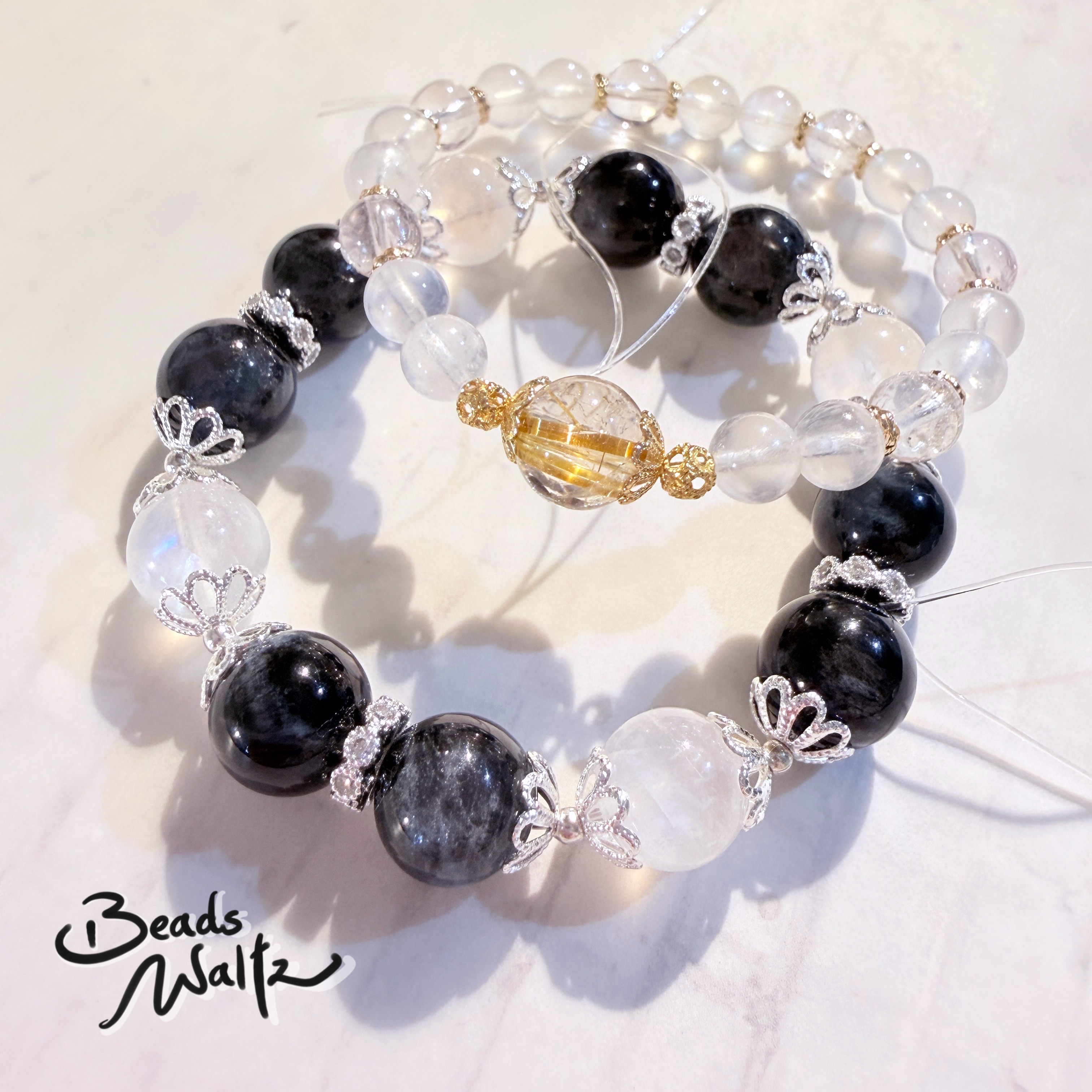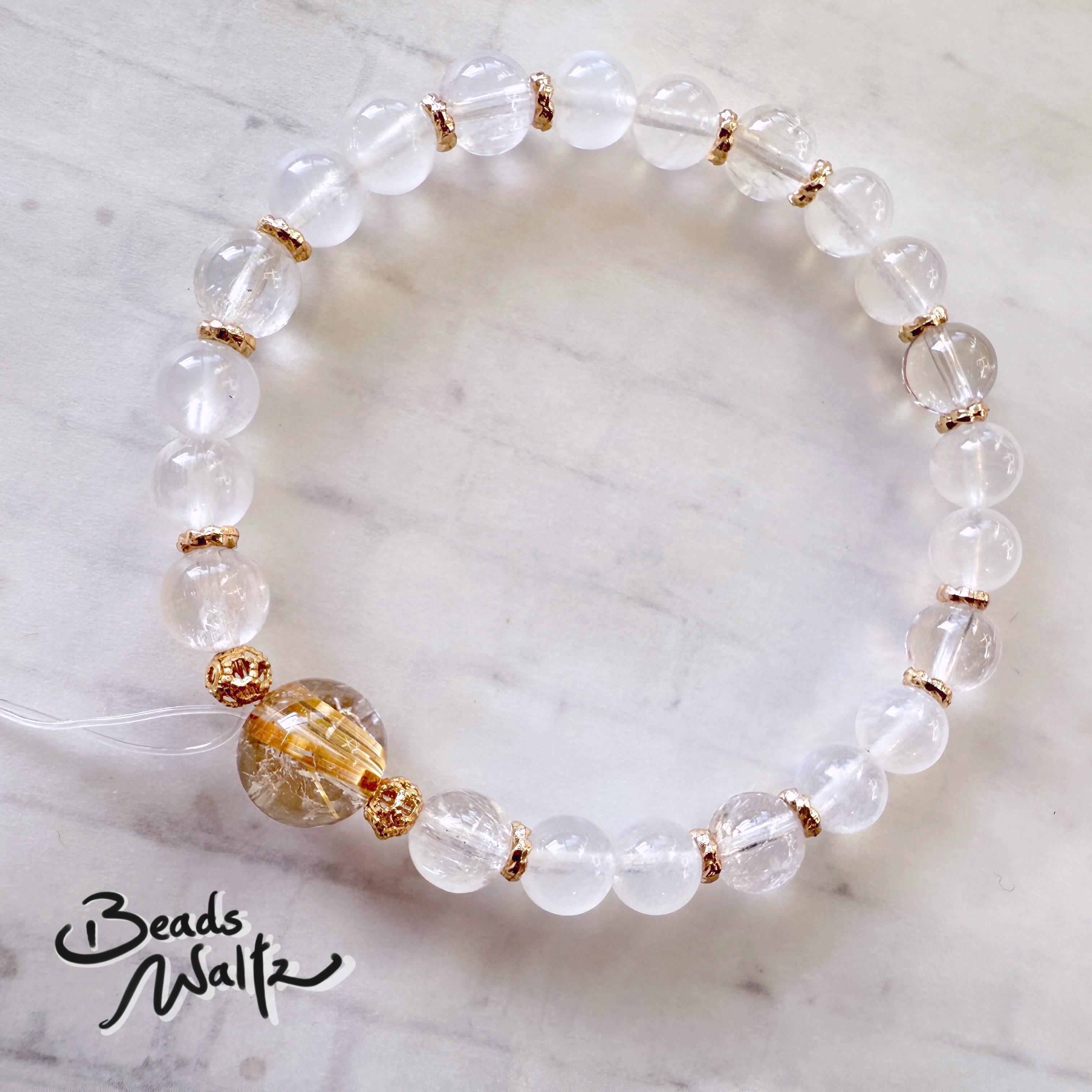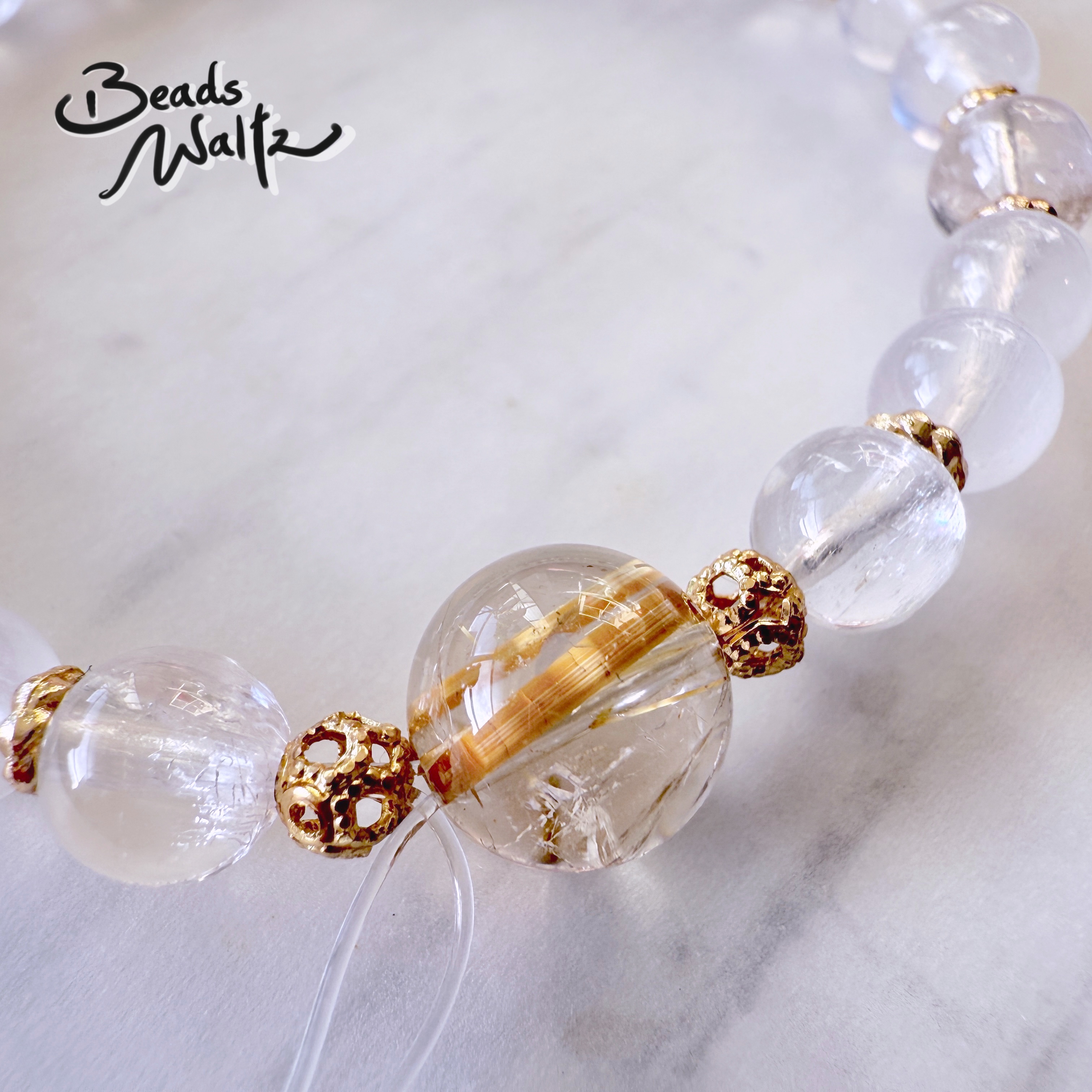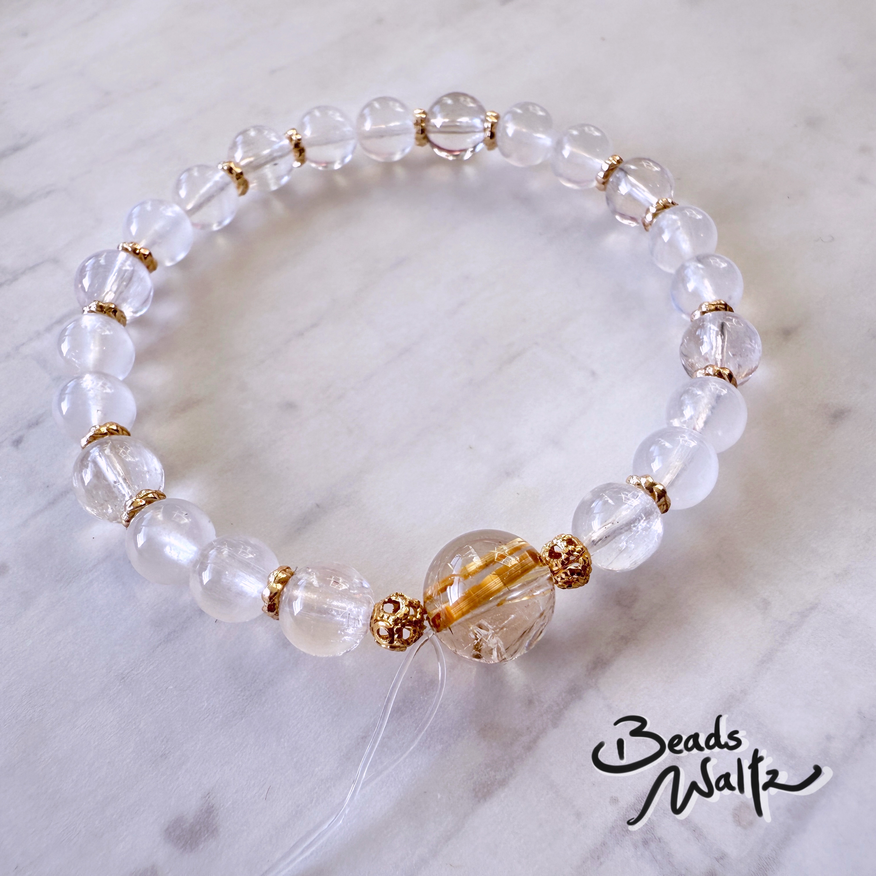 ★ Moonstone 6.5mm, Golden Rutile Quartz 10mm & Ice Kunzite 6.5mm