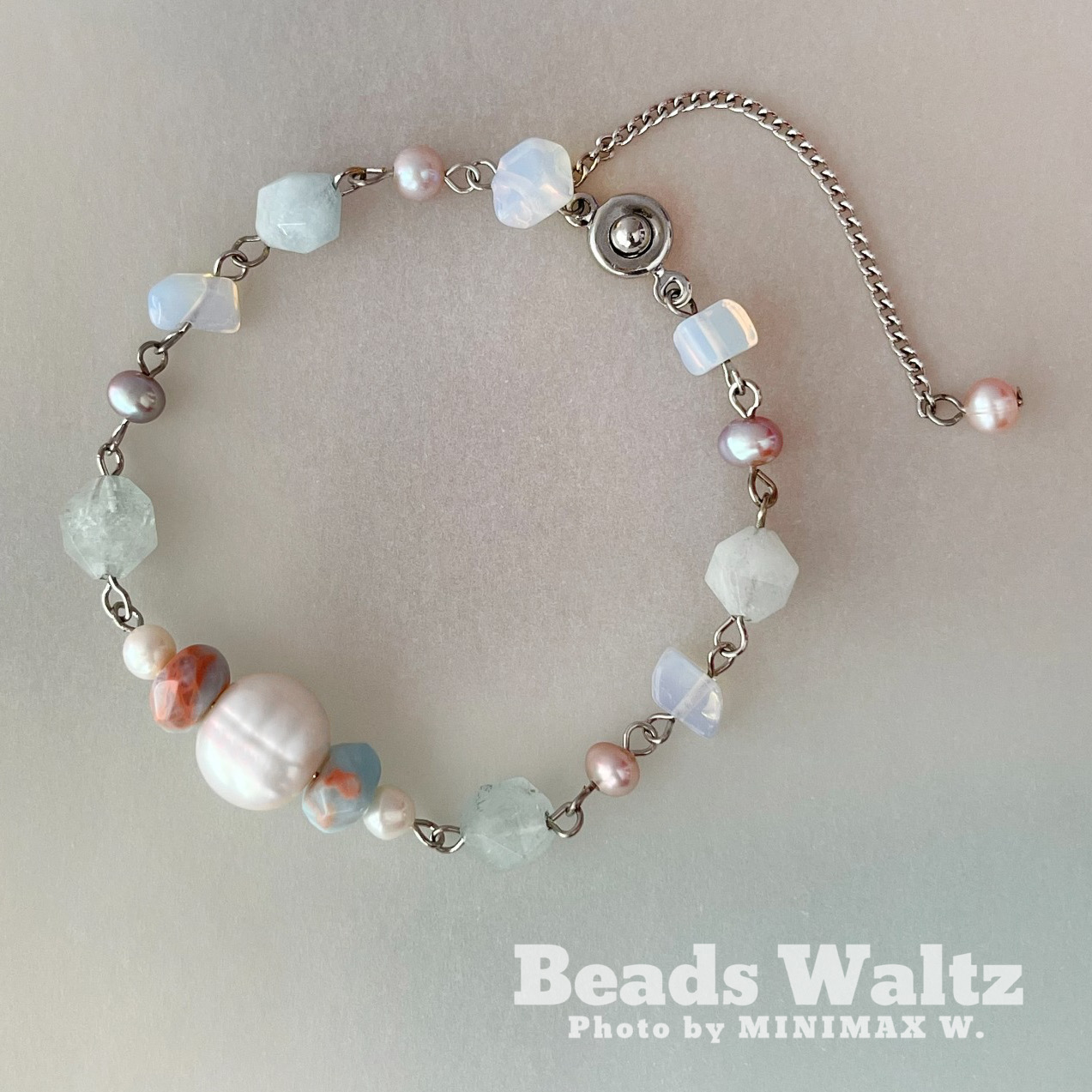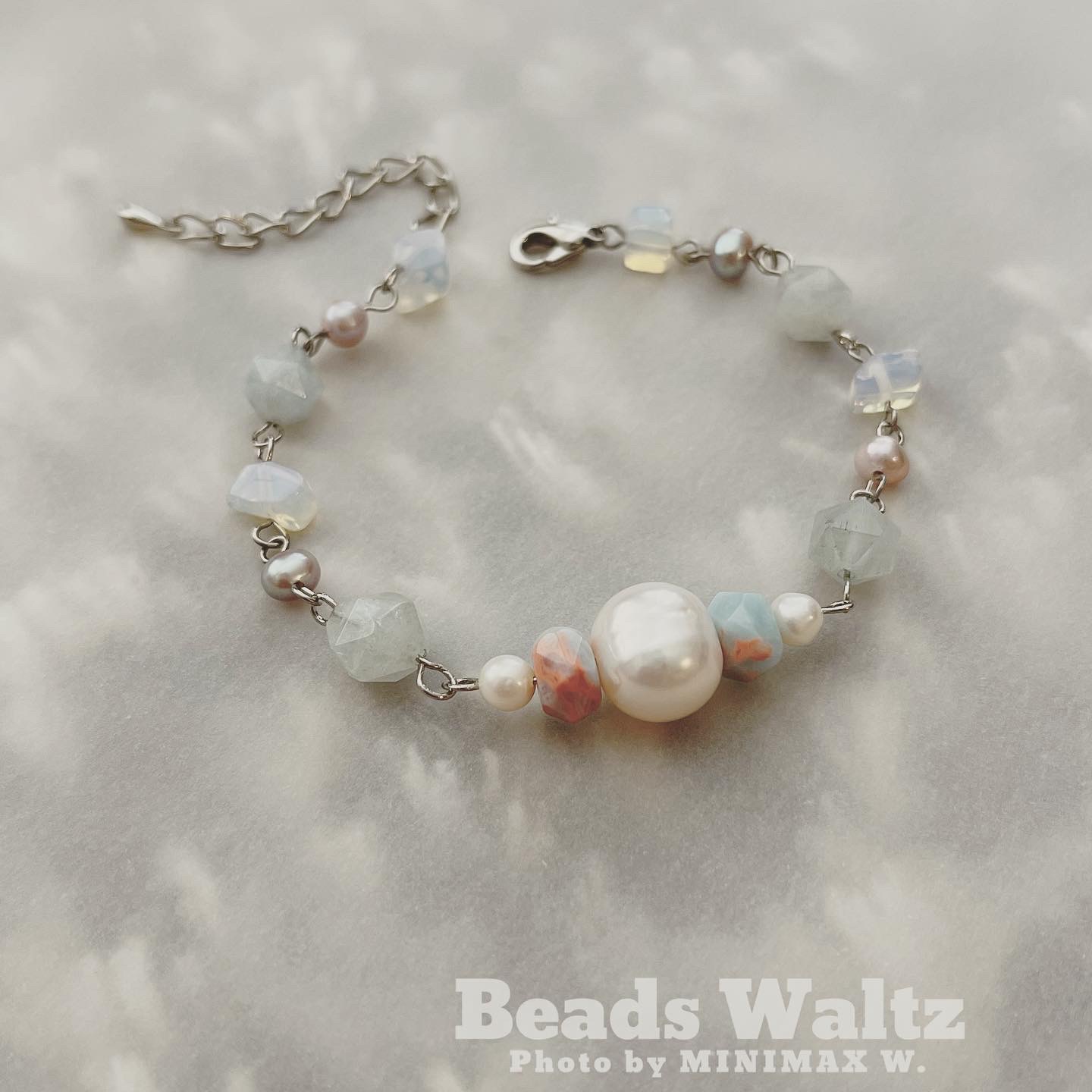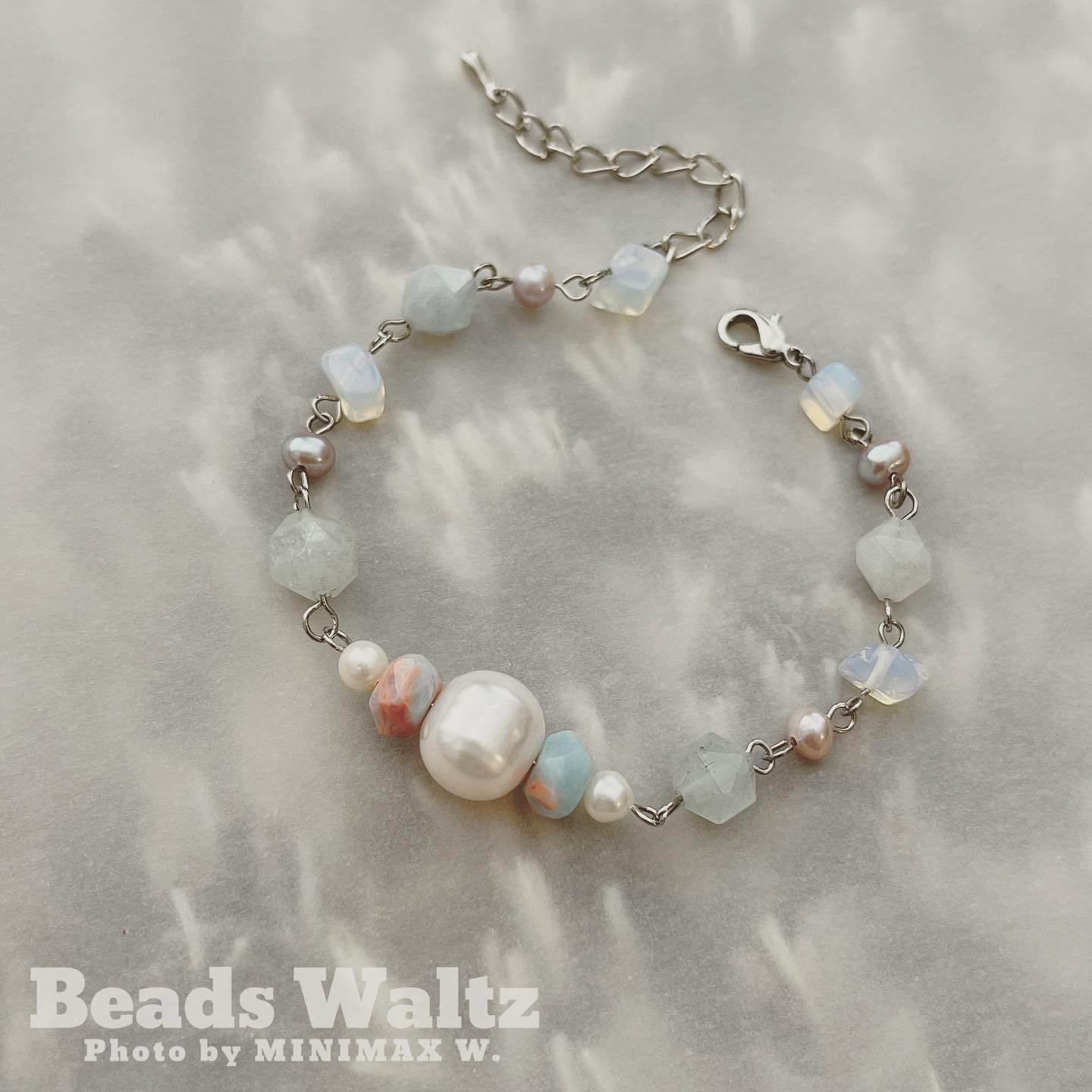 ★ Freshwater Pearl, Powder Blue Jasper, Aquamarine & Opal