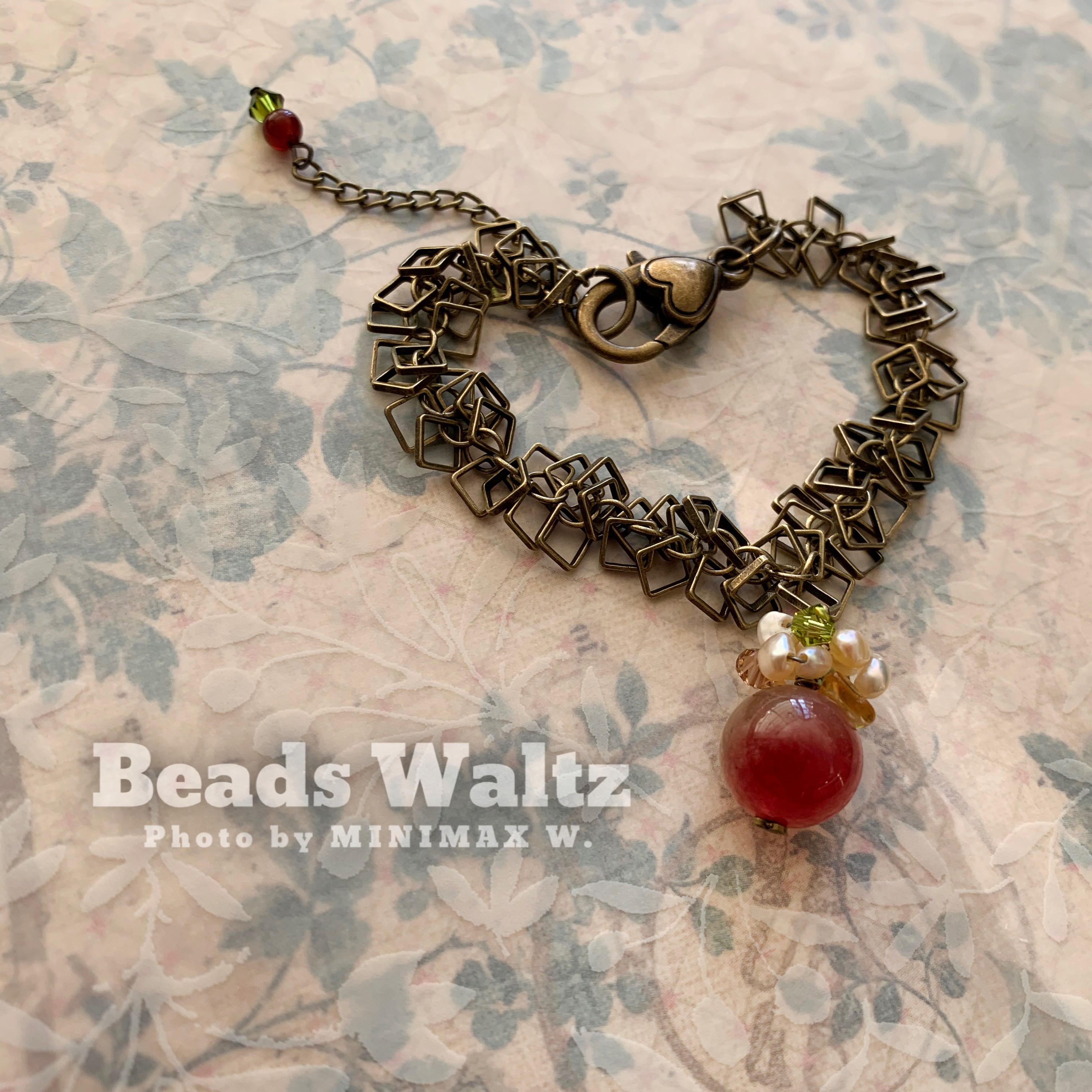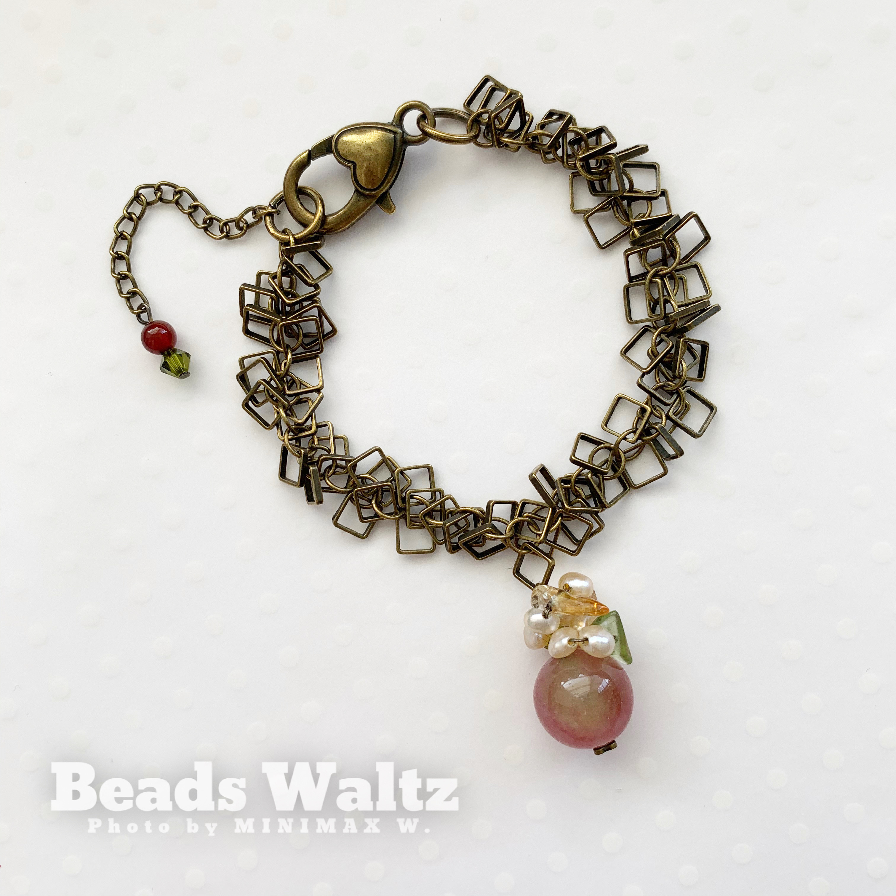 ★ Watermelon Tourmaline 12mm, Freshwater Pearl, Citrine, Prasiolite & Swarovski 4mm x 3, Agate & Bronze