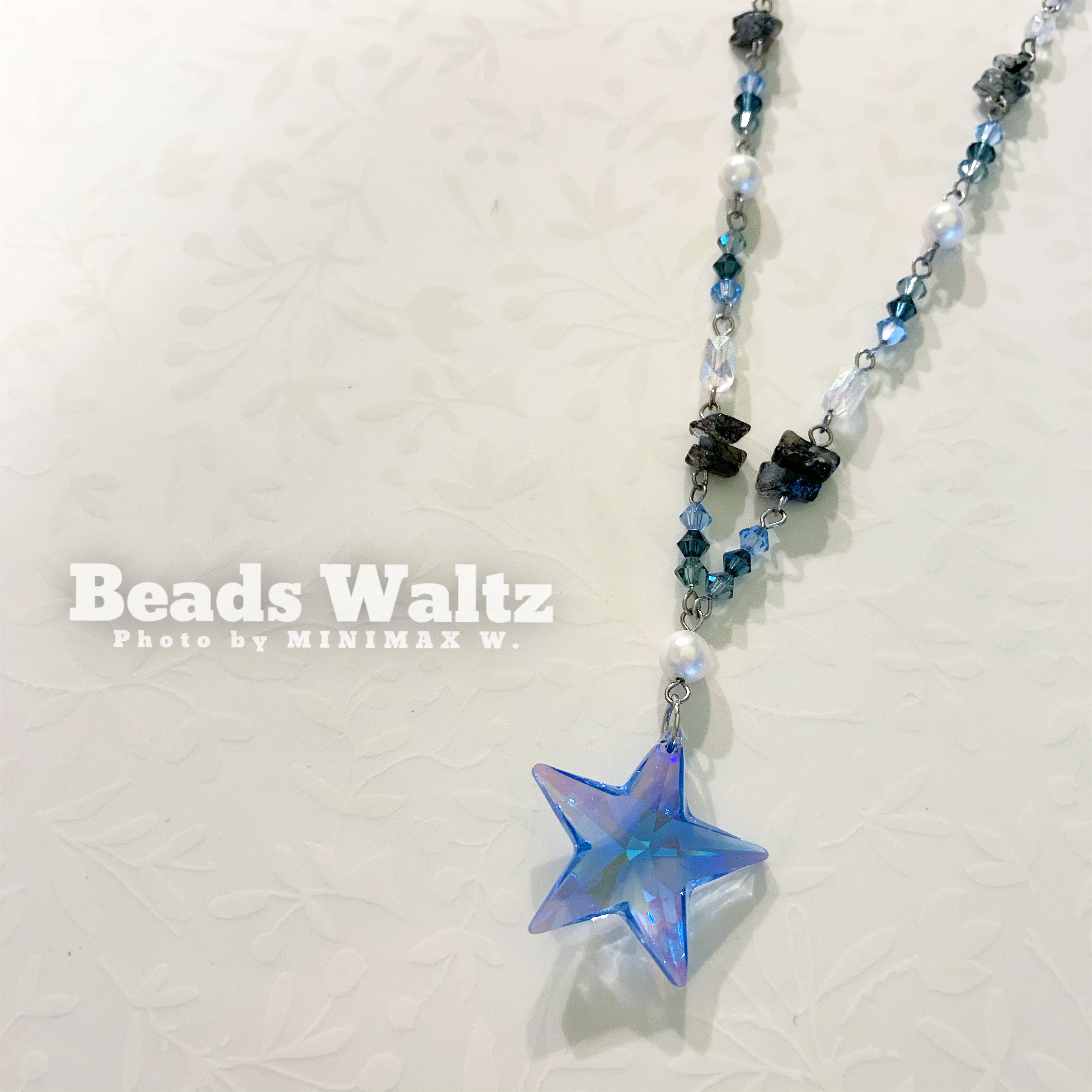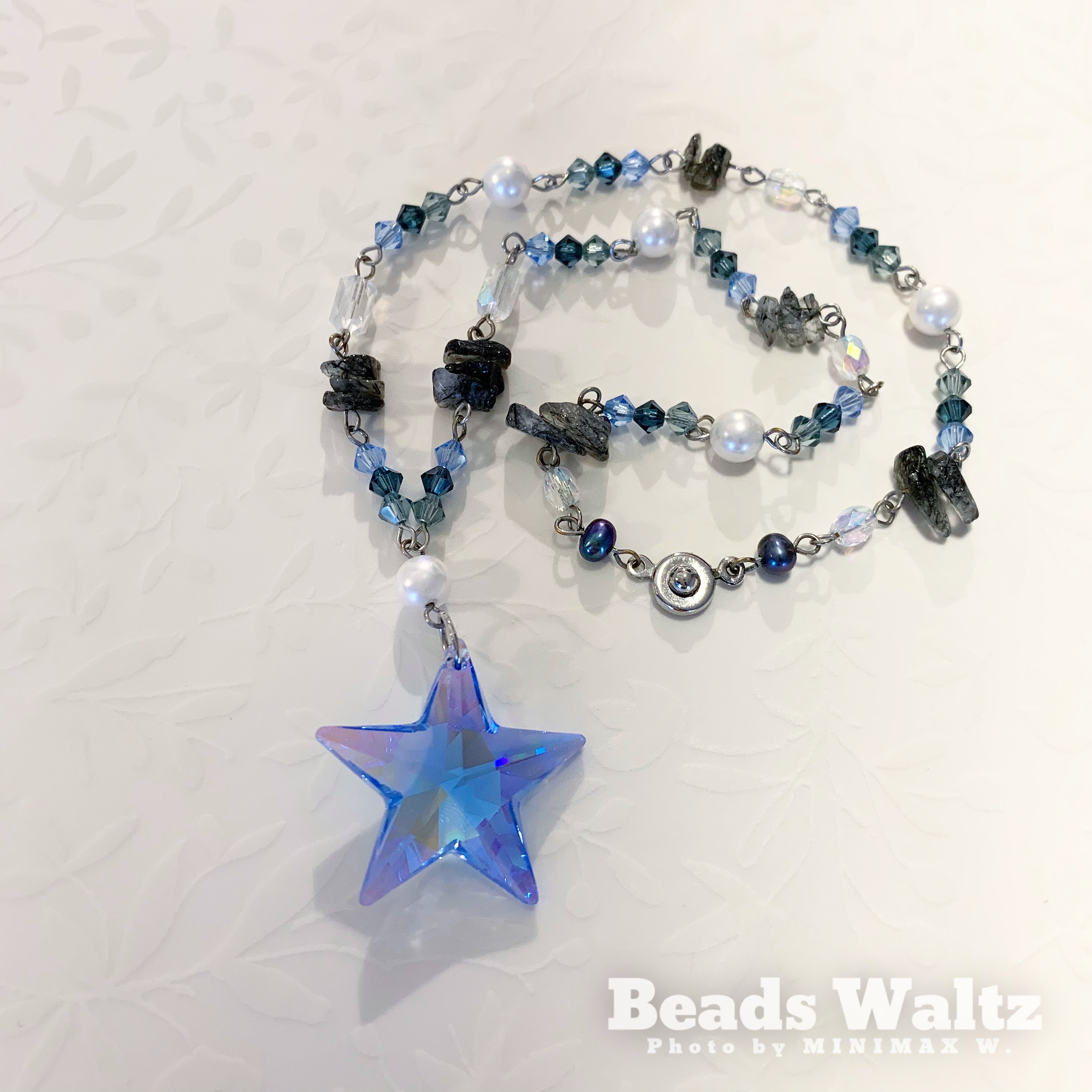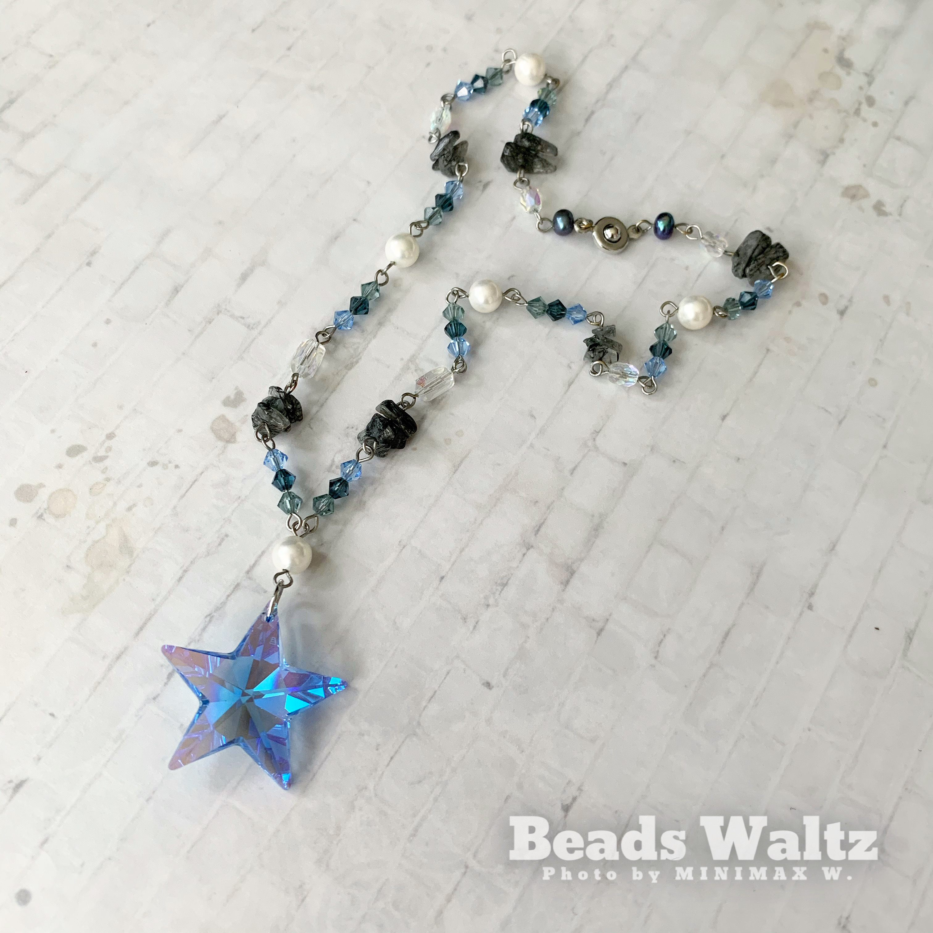 ★ Swarovski Blue Star, Swarovski 4mm x 30, Freshwater Pearl, Black Rutilated Quartz & Glass beads