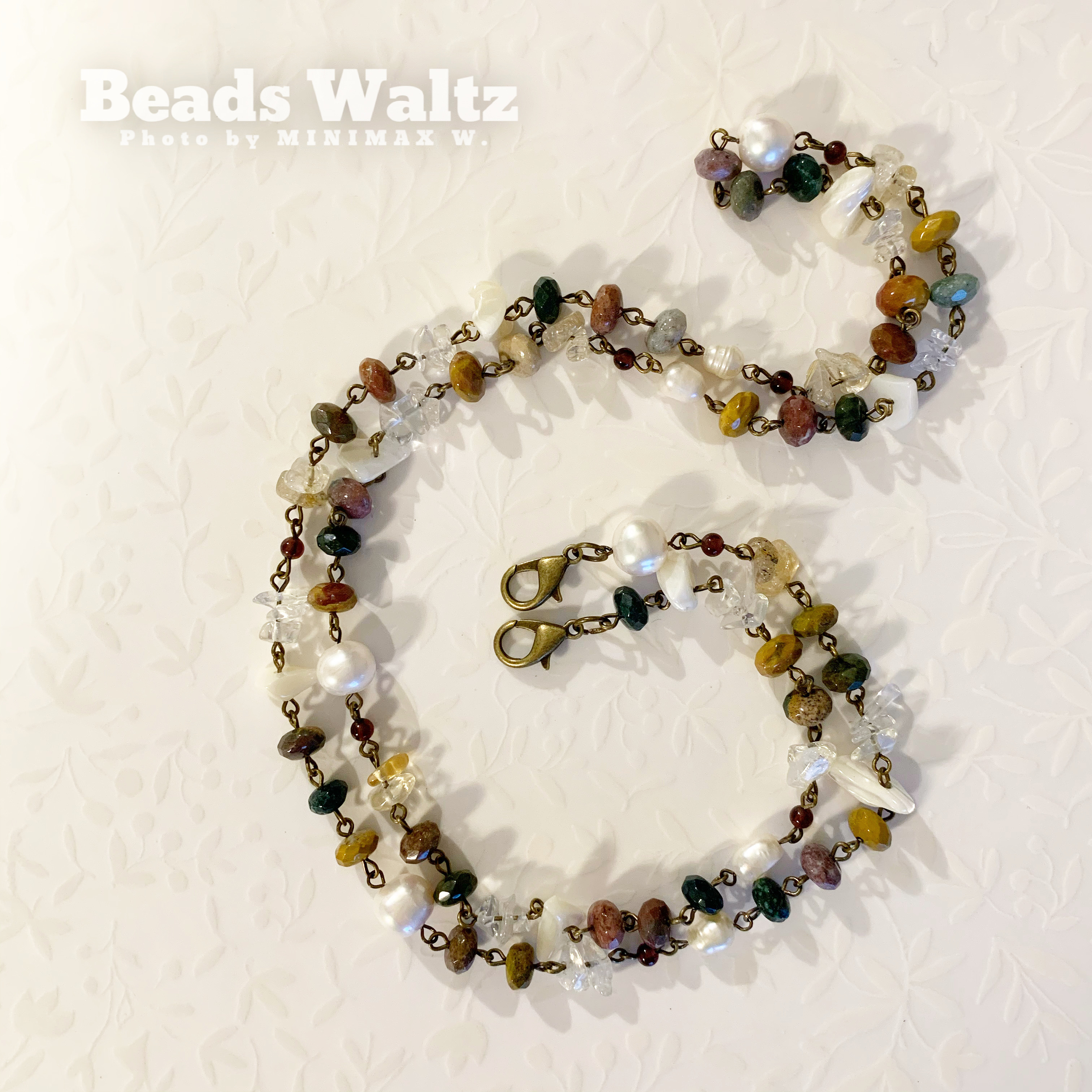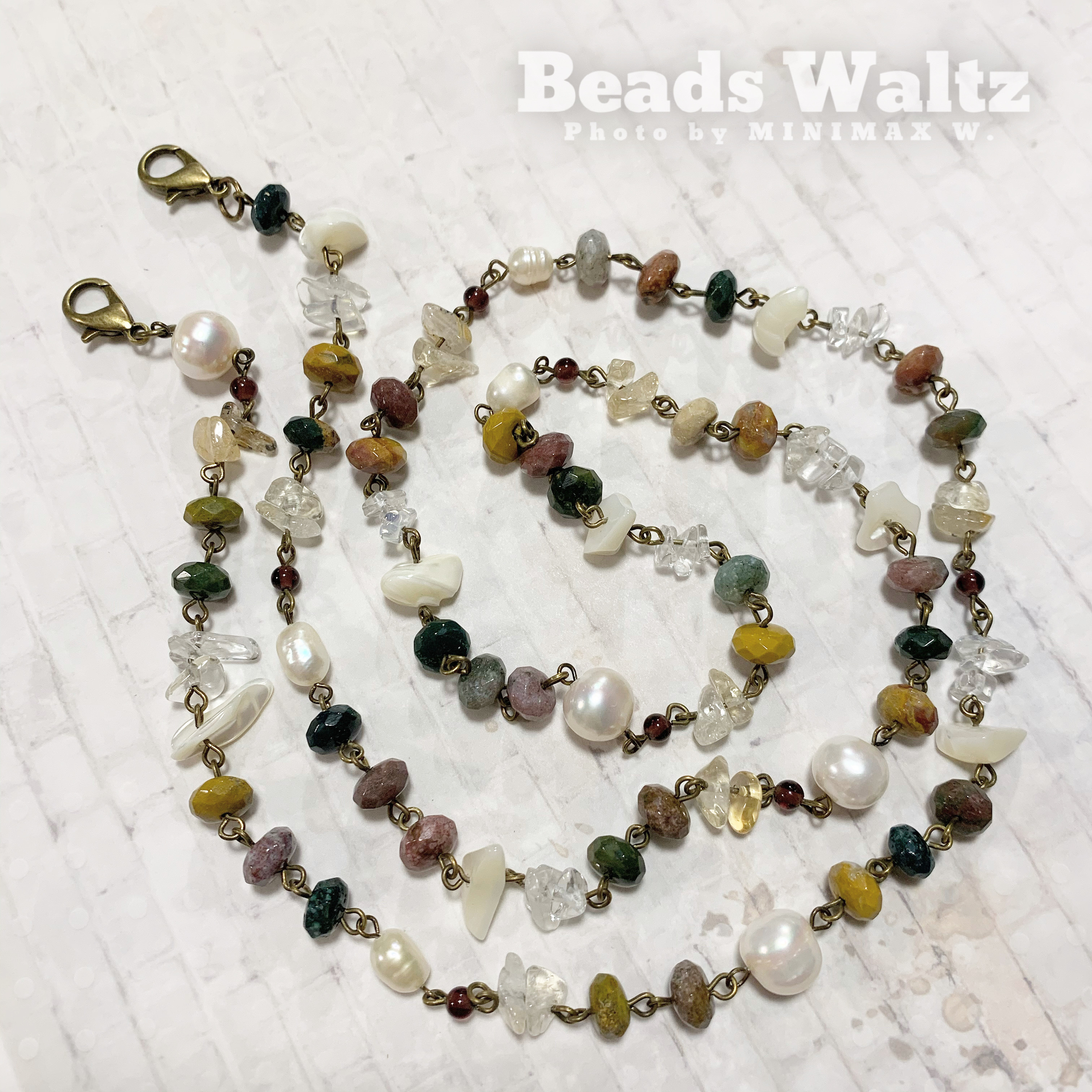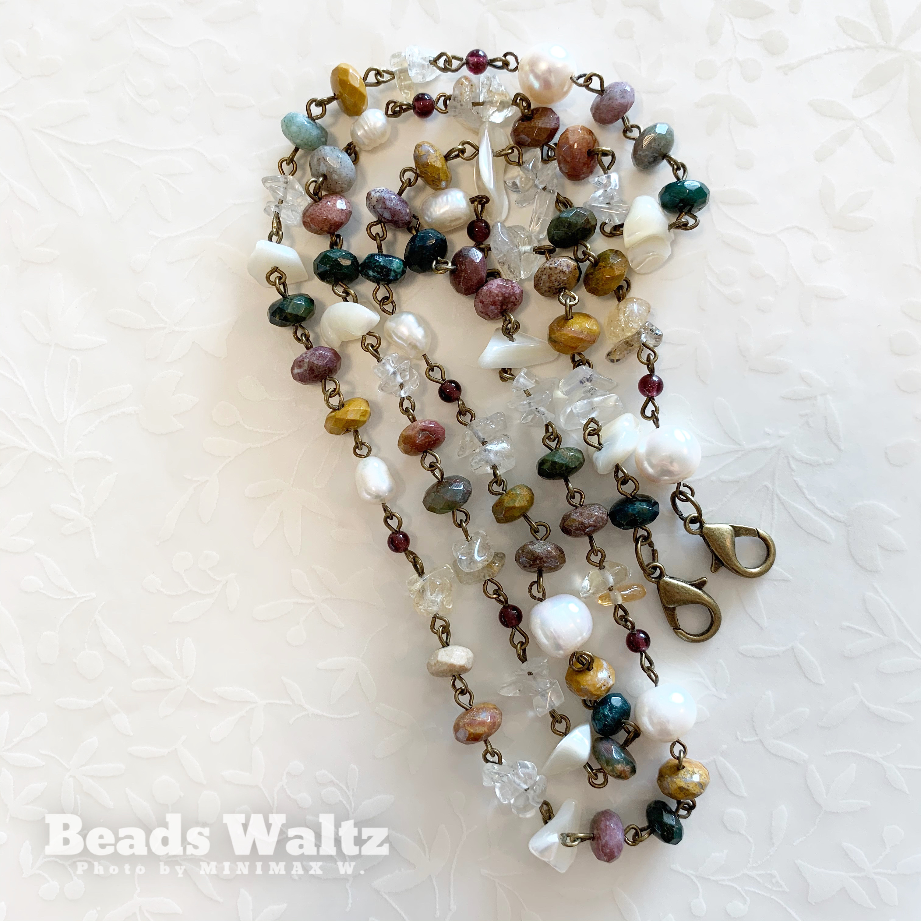 ★ Jasper, Freshwater Pearl, Garnet, Clear Quartz, Citrine, Golden Rutilated Quartz & Shell