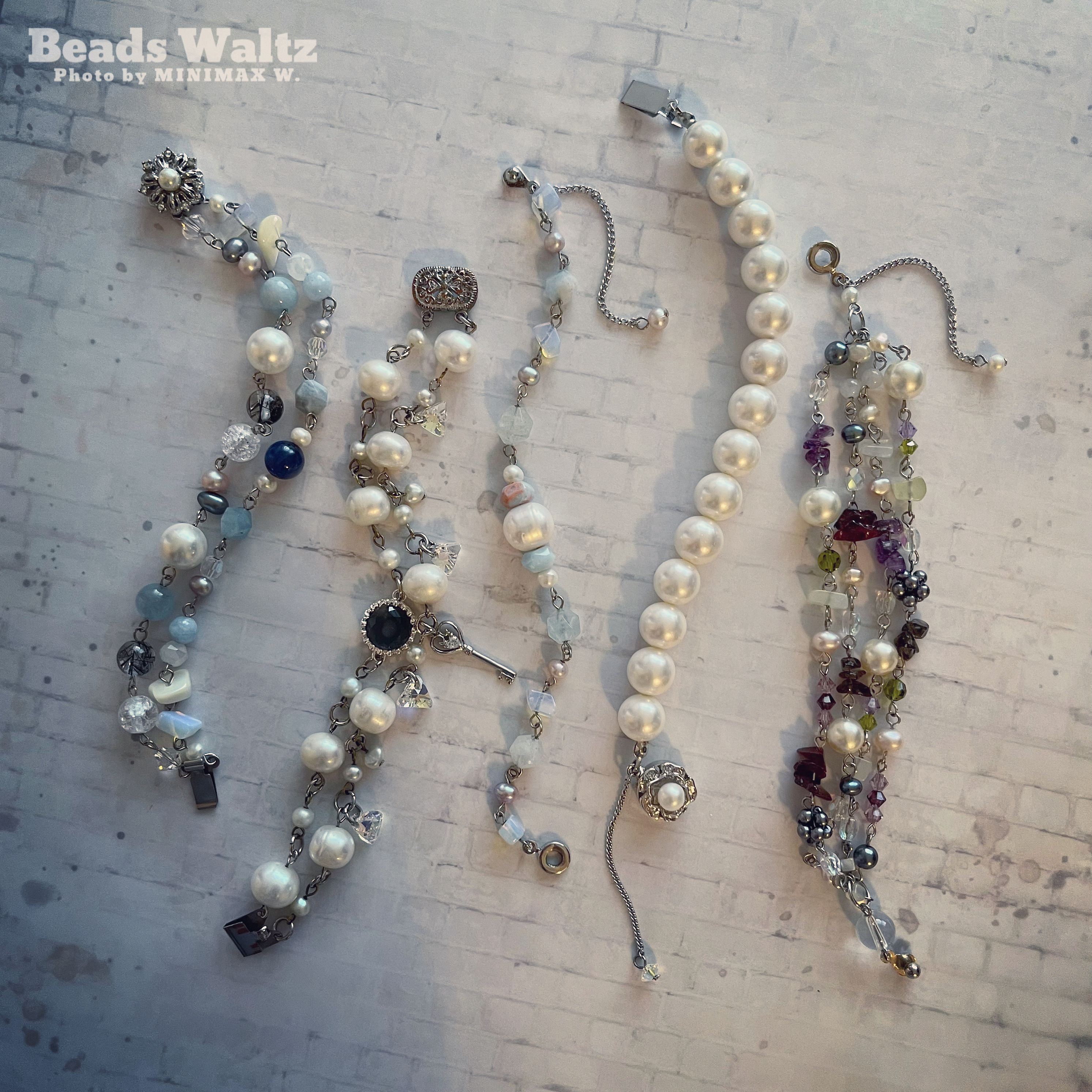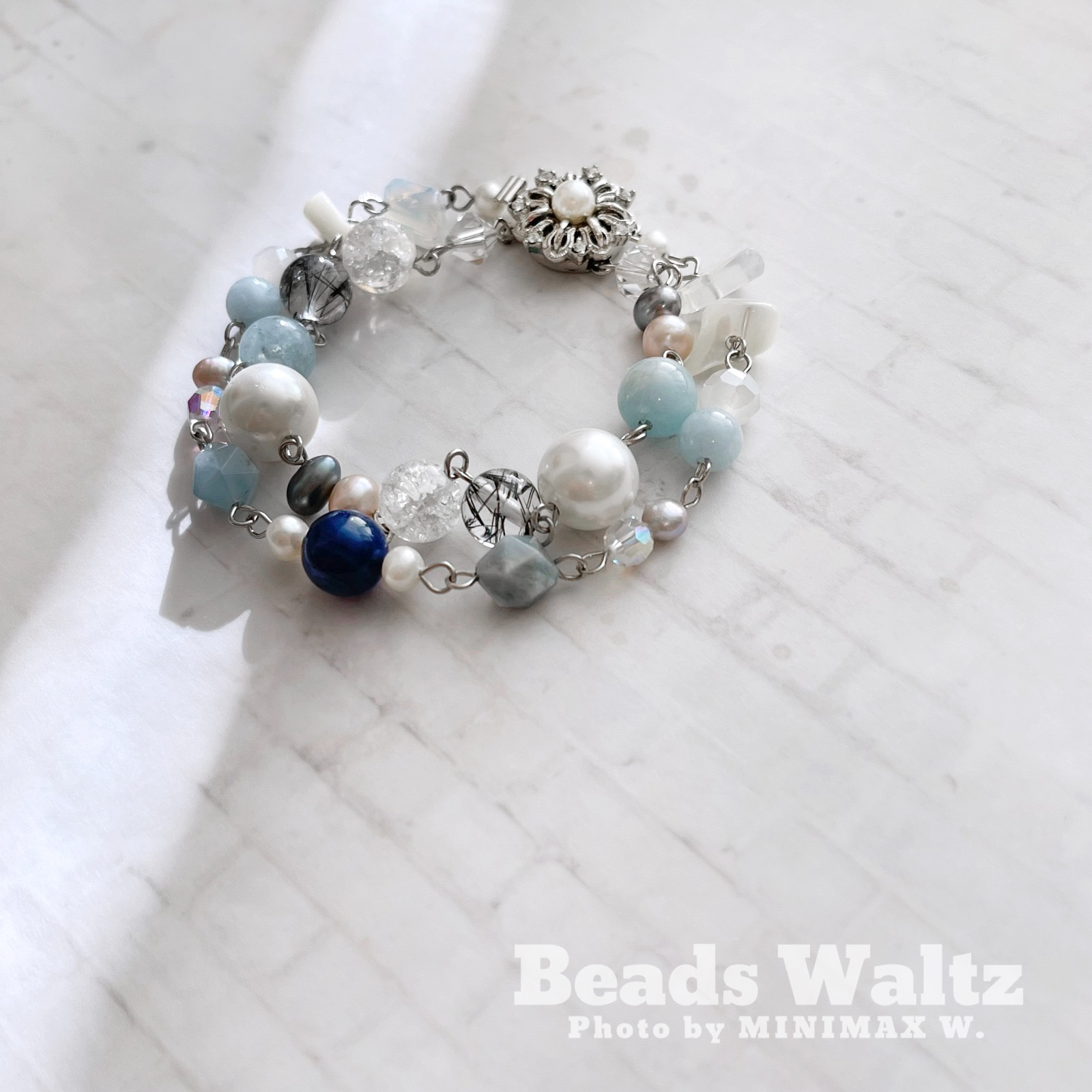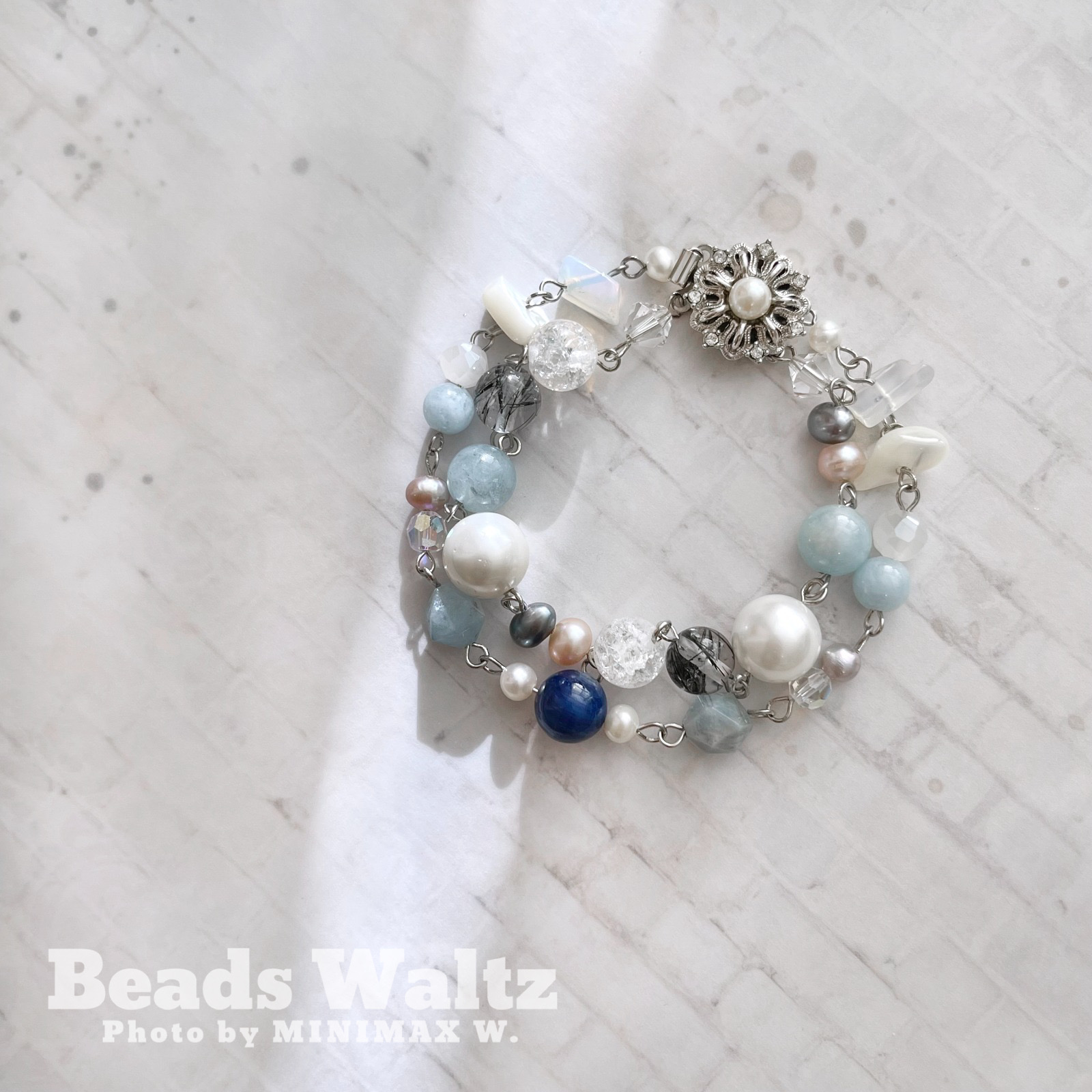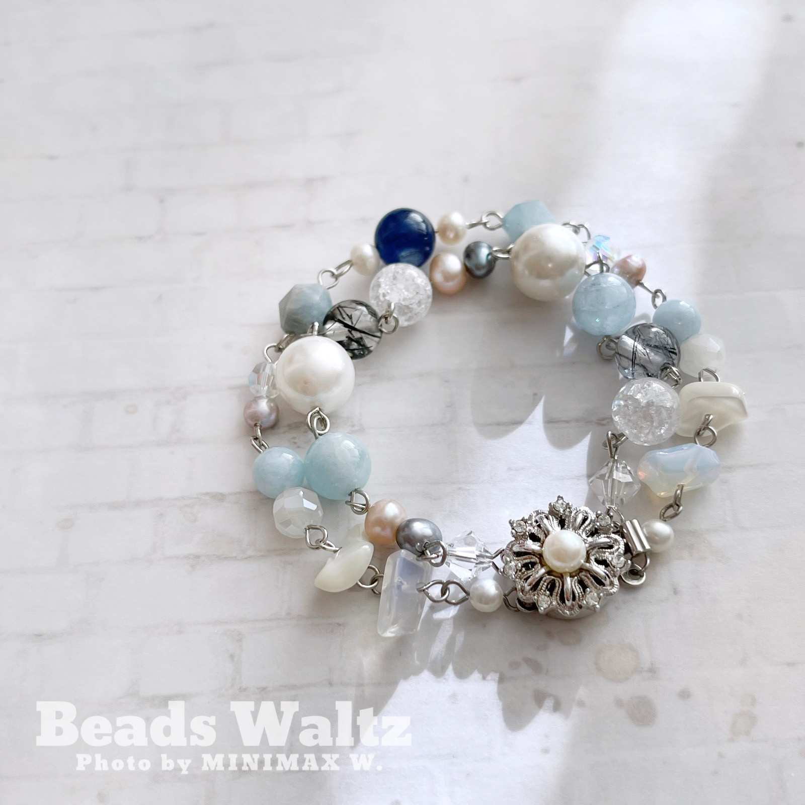 ★ Freshwater Pearl, Swarovski 5mm x 2, Swarovski 6mm x 2, Kyanite, Aquamarine, 7A Black Rutilated Quartz, Cracked Clear Quartz, Glass Crystal, Shell & Opal