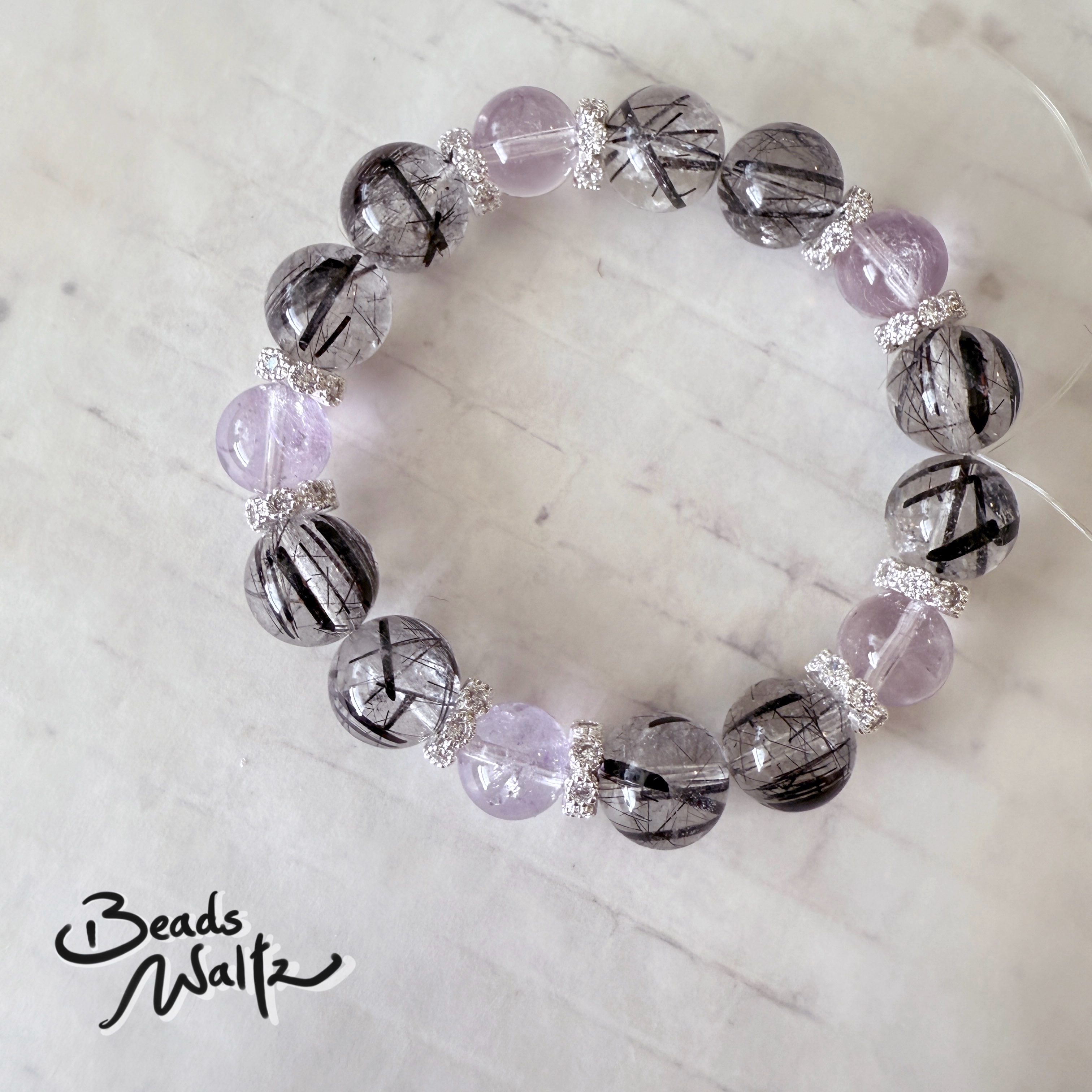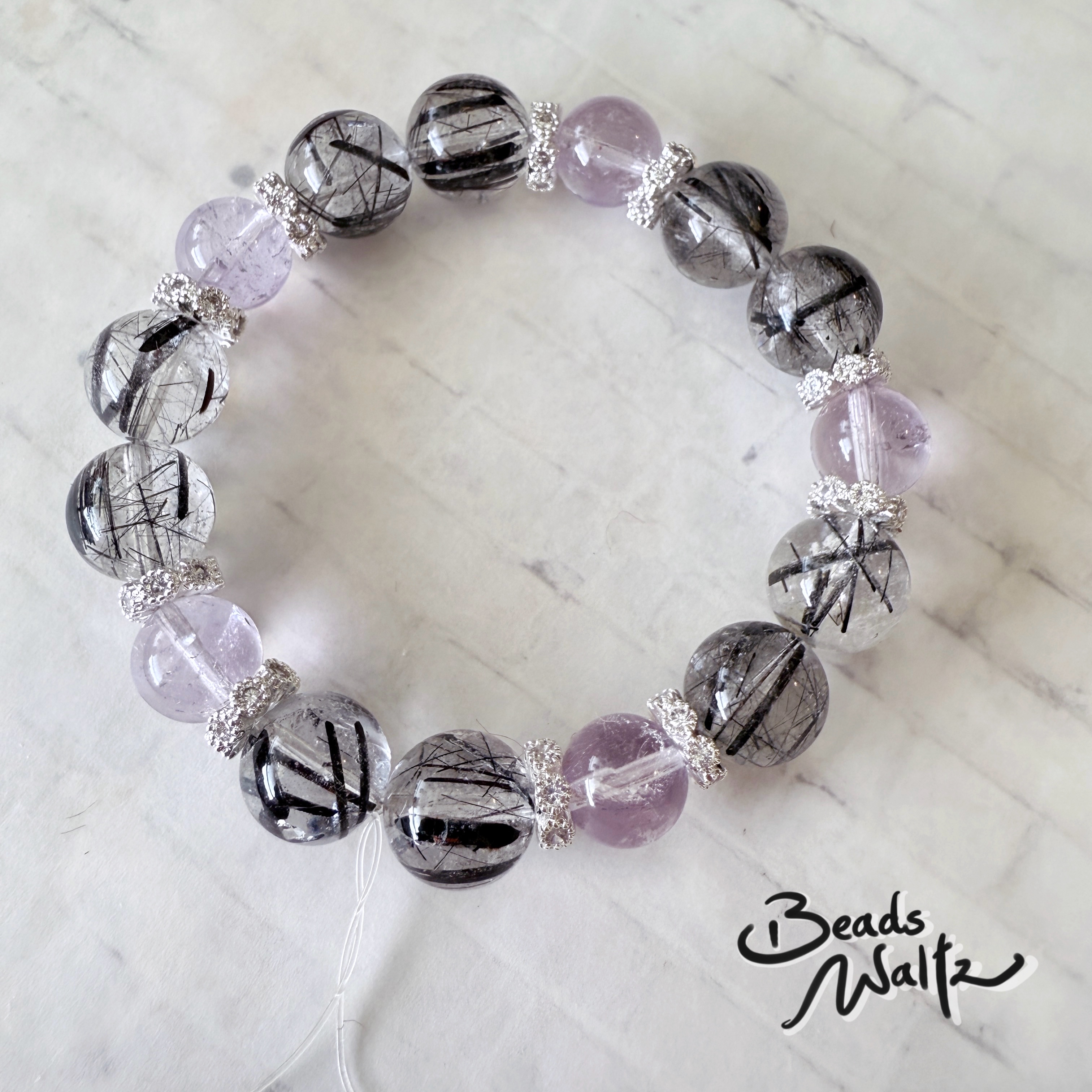 ★ Black Rutile Quartz Quartz 10.5mm & Bolivian Amethyst 10mm