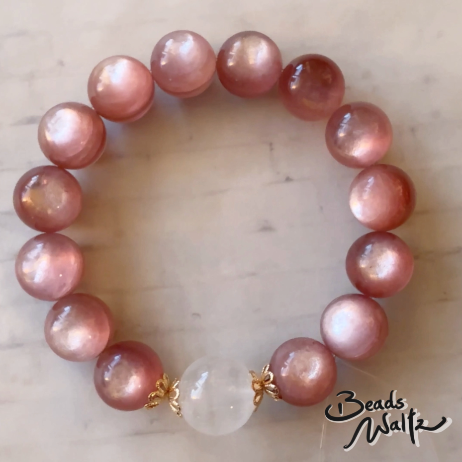 ★ Peach Lepidolite 12mm & 7A Blue Ray Moonstone 13mm