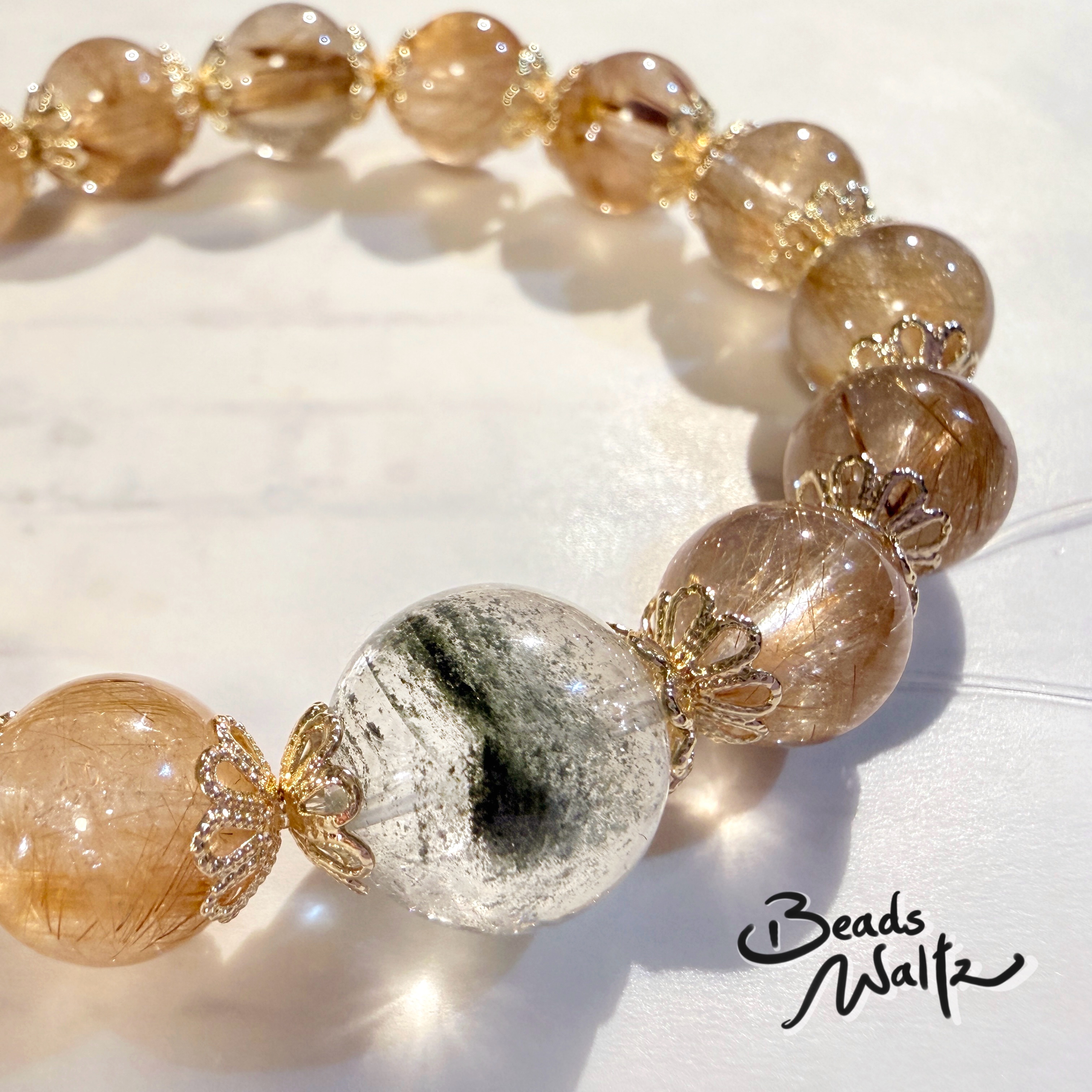 ★ Golden Rutile Quartz 10mm & Green Phantom 12mm