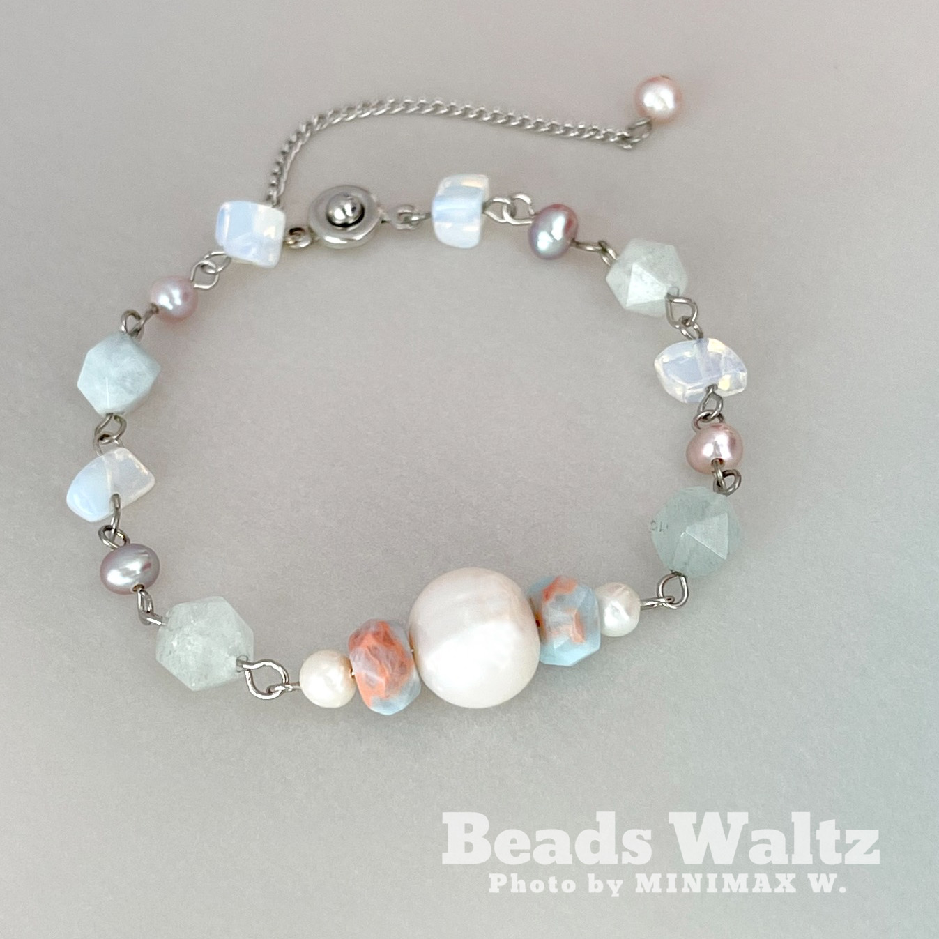 ★ Freshwater Pearl, Powder Blue Jasper, Aquamarine & Opal
