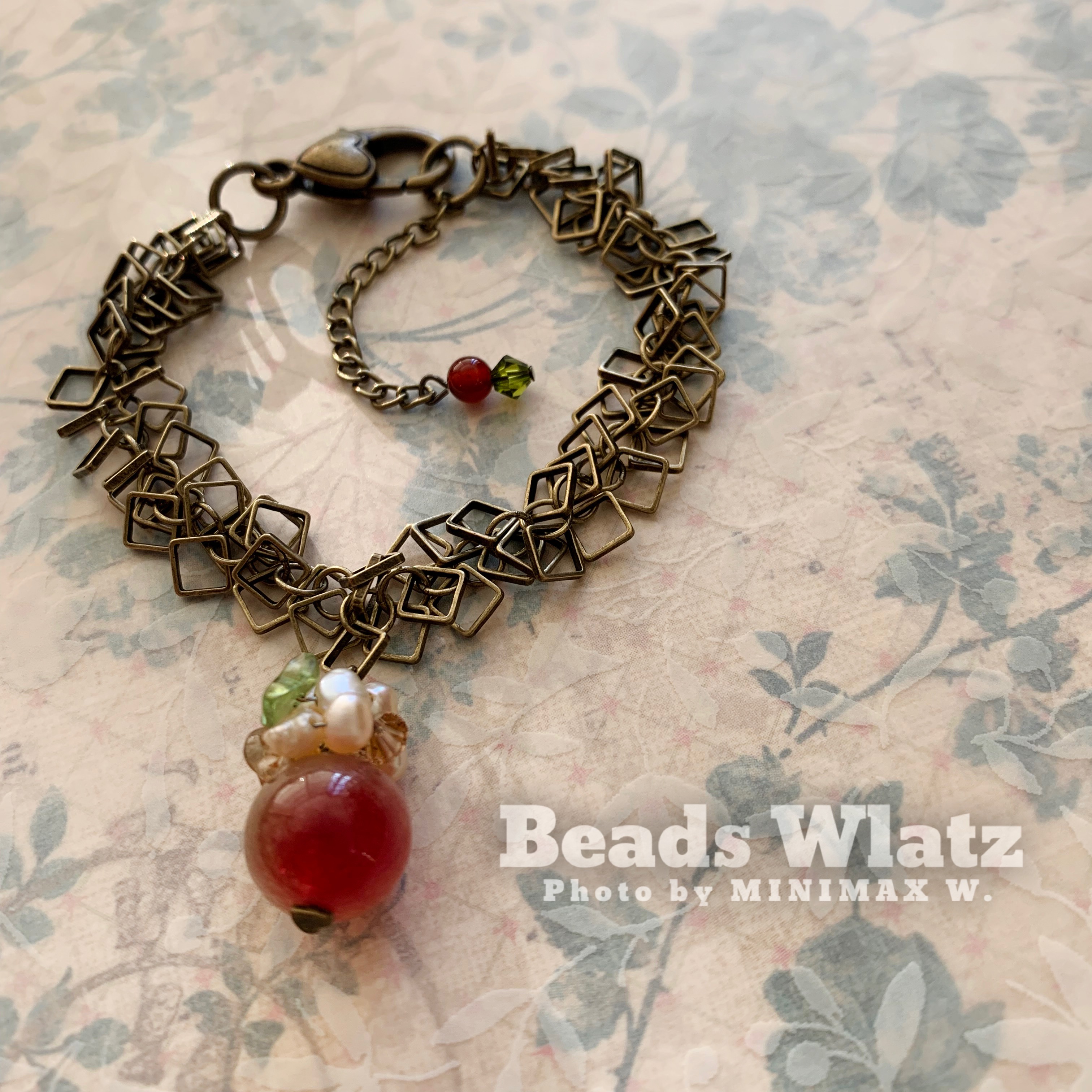 ★ Watermelon Tourmaline 12mm, Freshwater Pearl, Citrine, Prasiolite & Swarovski 4mm x 3, Agate & Bronze
